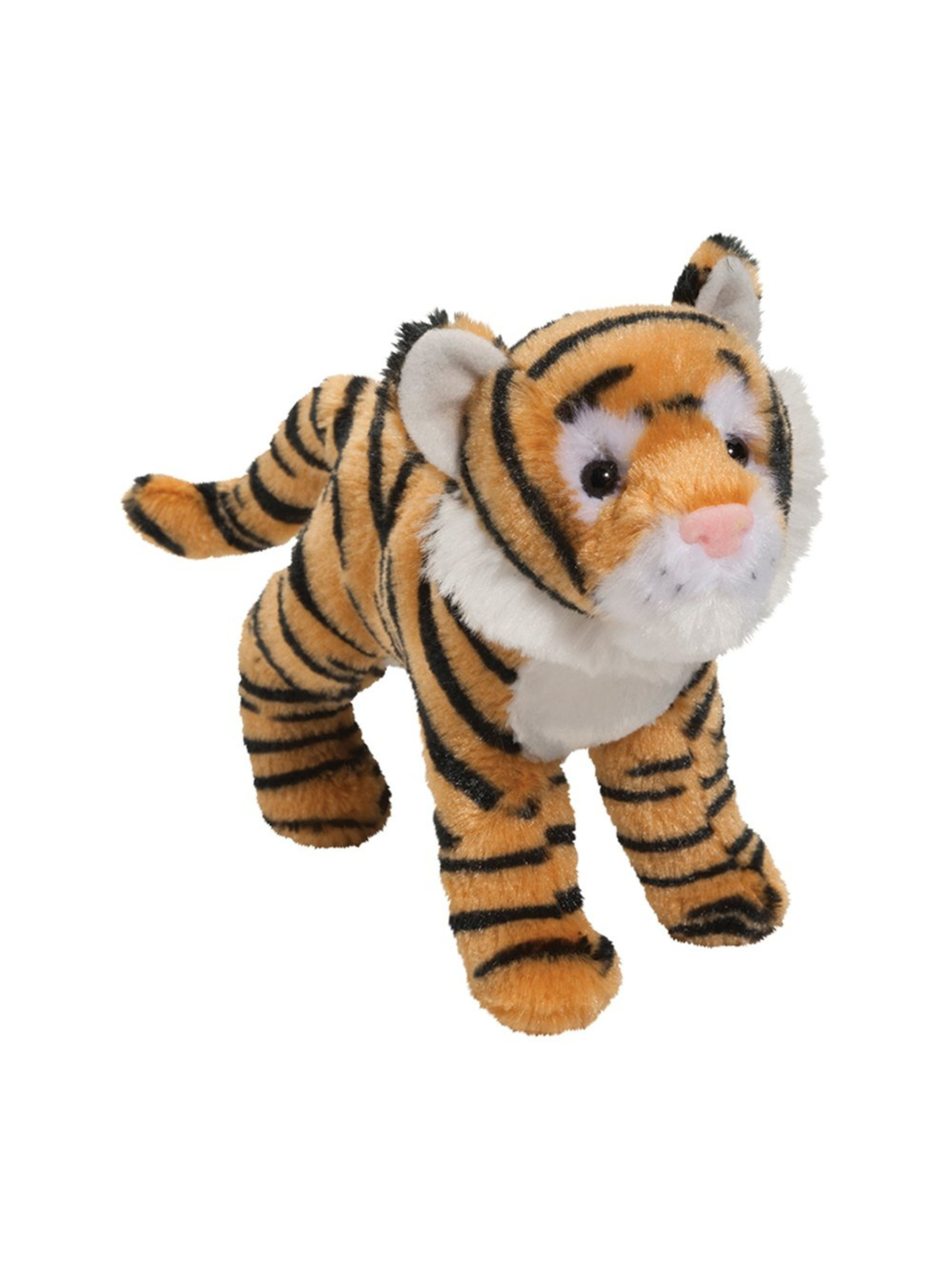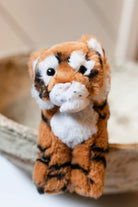 Little Lava the Tiger calls the exotic jungles of India her home but would happily cuddle up into your pocket or backpack if given the chance! This charming mini plush is richly detailed with an orange and black striped coat. Realistic white markings accent her face for a look that’s both adorable and lifelike. Additional details include a fluffy ruff around her cheeks and a small, pink nose. Lava’s playful design features an upright stance that’s been stuffed with resilient polyester fill for a lifetime of fun. Go ahead and give in to the spirited shine of her playful dark eyes. This lively Tiger cub stuffed animal is a perfect pick-me-up pal for any wildlife fan!