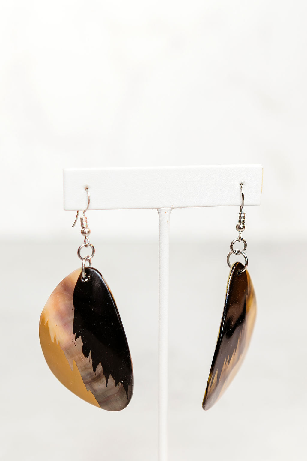 Add a splash of bold elegance to your look with these playful black and gold painted teardrop shell earrings. Their unique shape and shimmering finish catch the light beautifully, making them perfect for turning heads at any occasion. Lightweight and eye-catching, they bring a fun yet sophisticated vibe to your outfit.