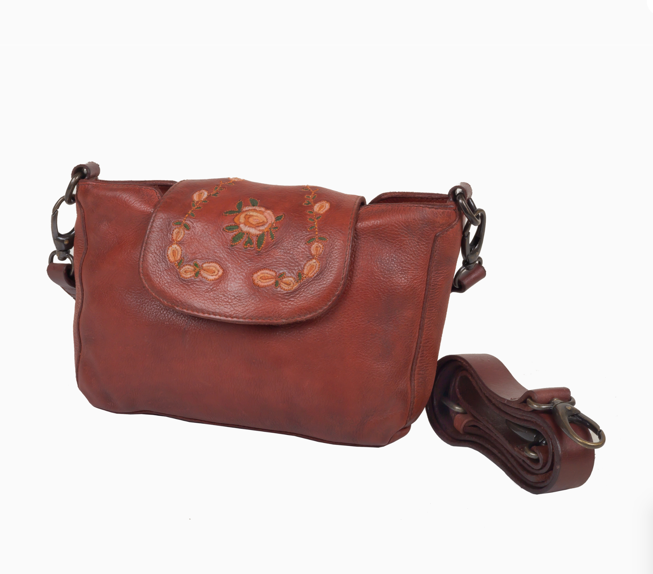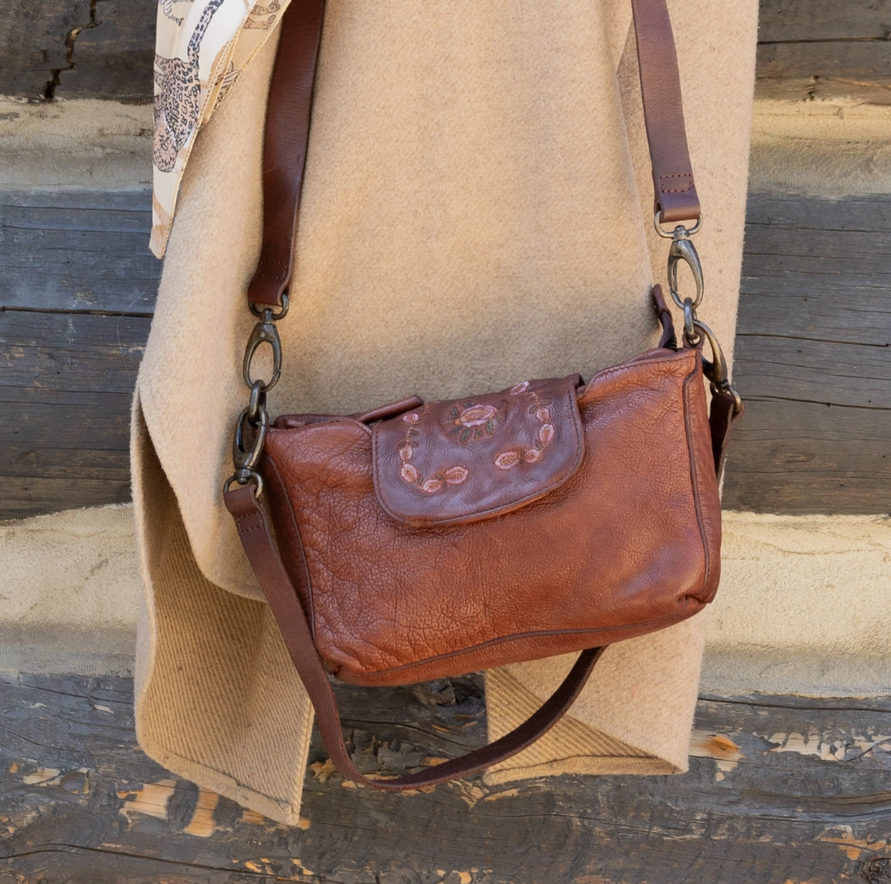 Introducing the DOROTHY crossbody from the Nashville Collection. Each bag is hand embroidered and distressed individually. The small and practical Dorothy has vegetable-tanned bridle leather straps and crossbodies derived from Western equestrian sports. Discover Keaan West's Nashville Collection, a fusion of urban ruggedness and timeless elegance. Inspired by Nashville's music heritage and cowboy culture, this leather goods collection features distressed leather and embroidered floral accents reminiscent of cowboy boots.