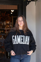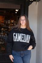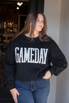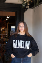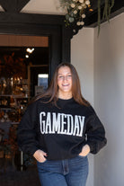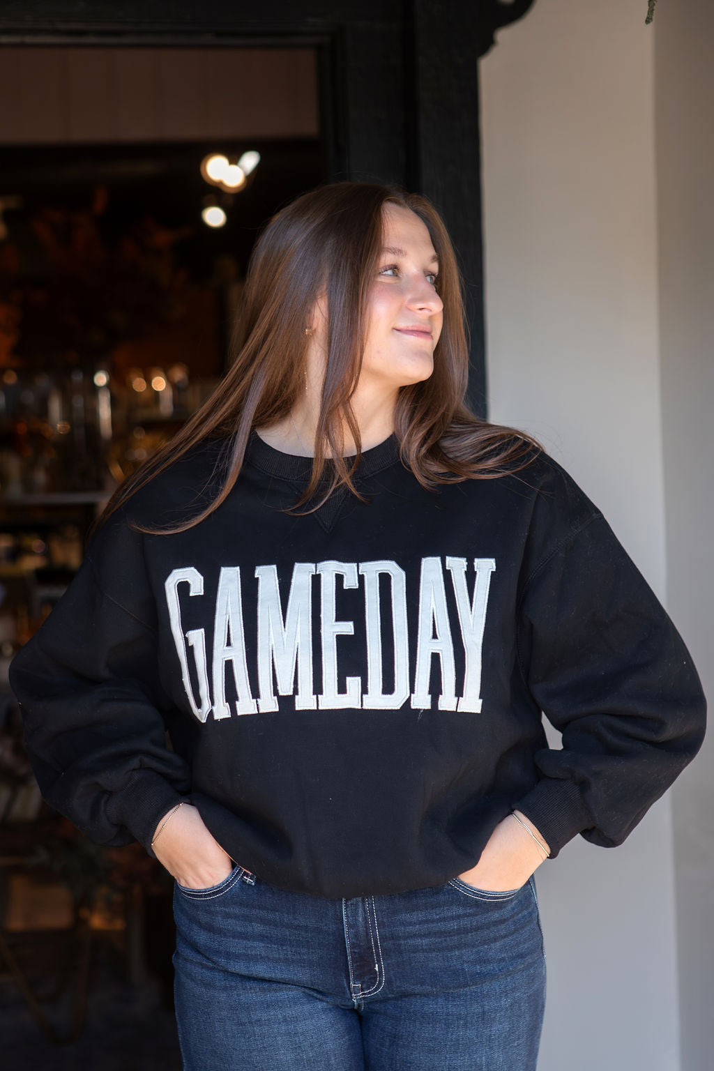 -GAMEDAY lettering -Oversized, relaxed fit -Ribbed cuffs and hem -Soft cozy fleece interior -Crew neckline with V-stitch detail