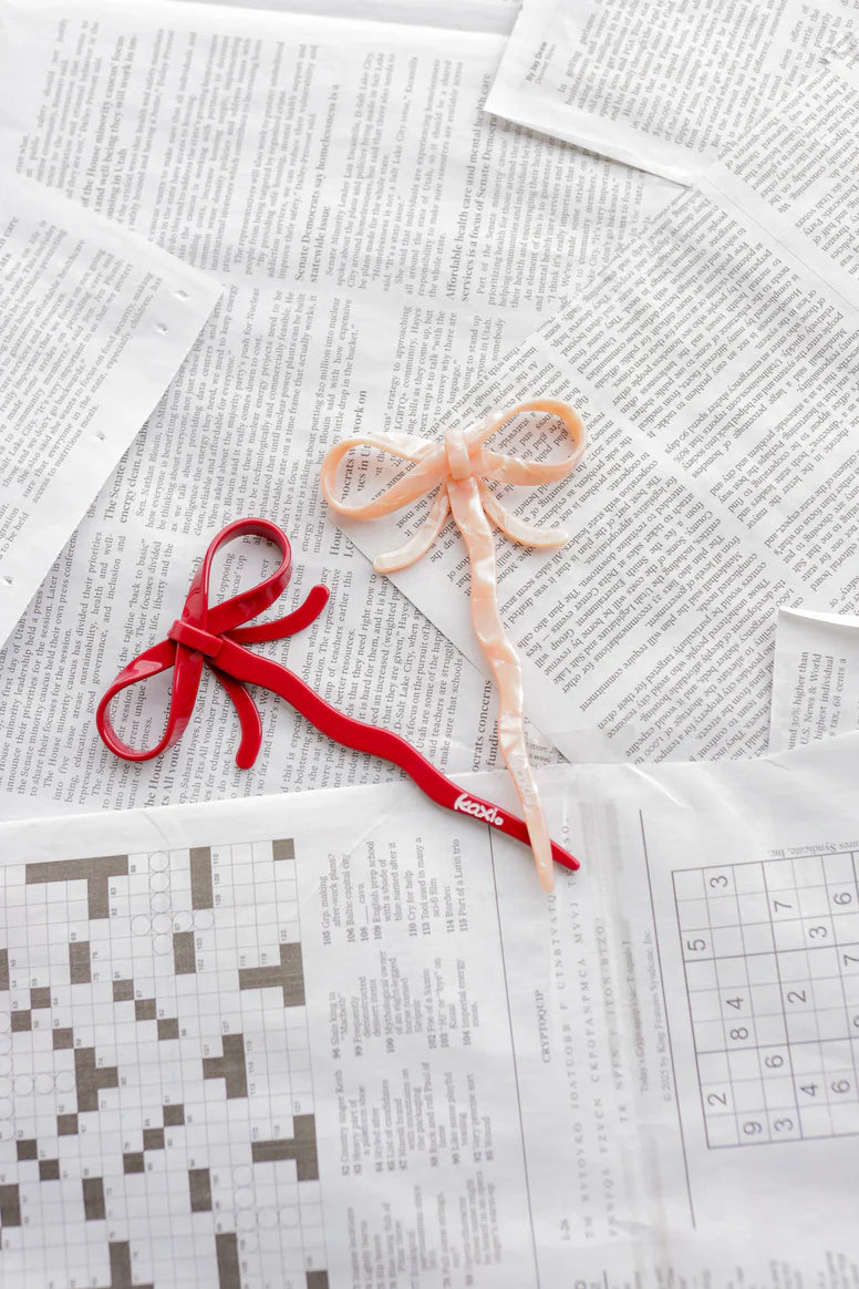 These French pins are game-changers once you master them—they hold your hair perfectly without leaving any creases. Ideal for keeping hair off your neck while working, cooking, or on the go, these pins feature an adorable bow accent that peeks out from the top of your bun for a charming finishing touch.