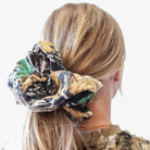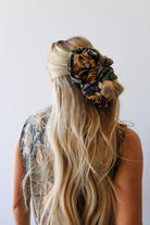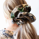Make a bold statement with this oversized jumbo scrunchie featuring an exclusive camo cotton pattern. The lightweight chiffon-inspired design wraps around any hair length, offering five times the style of a traditional scrunchie with the KAXI signature tag.