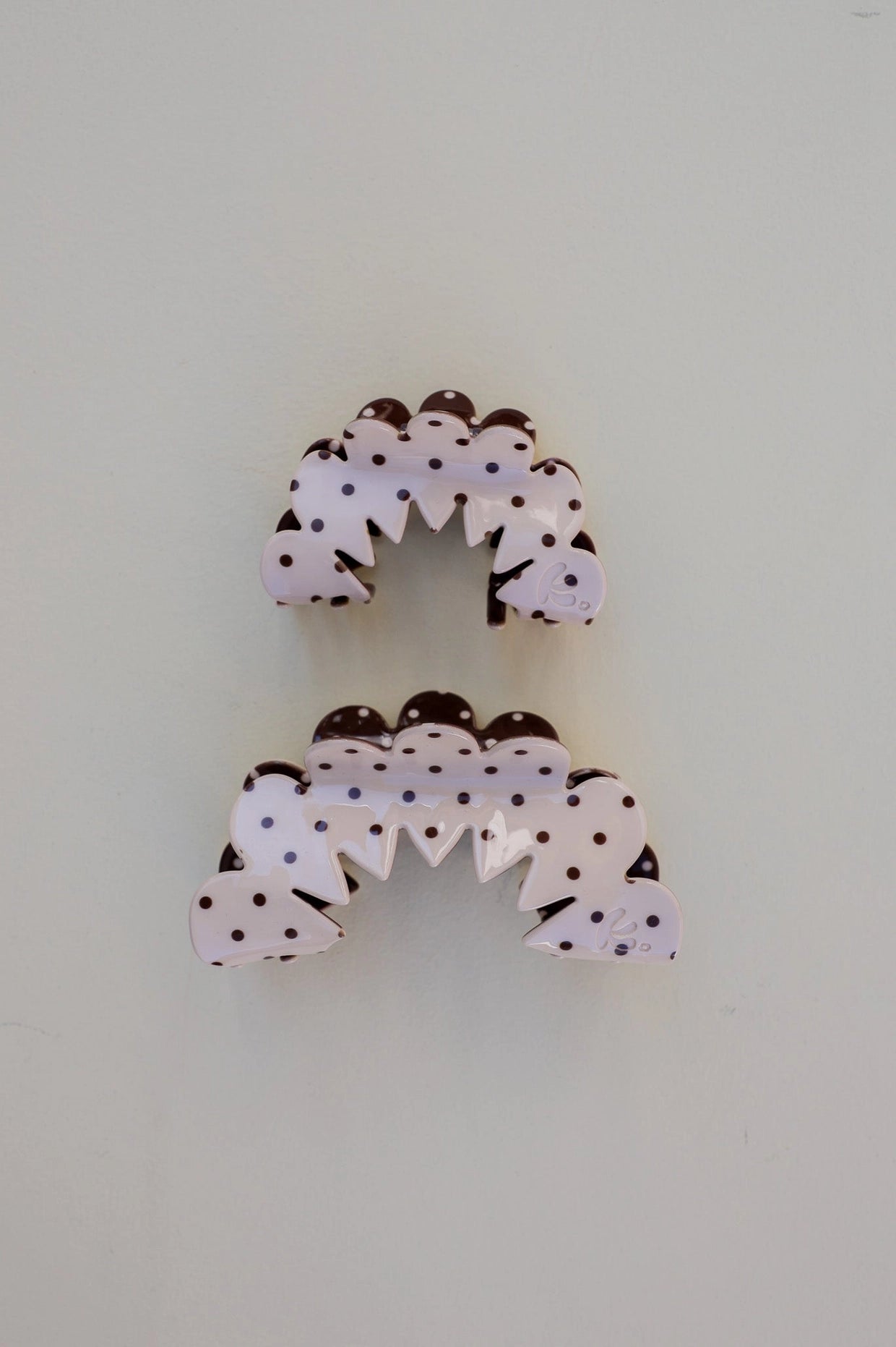 Coming back in our best selling style, this claw is a polka dot loving girls dream. With the cutest arch shape of petals and contrasting polka dot coloring. And everything is pulled together with an engraved kaxi 'K'.
