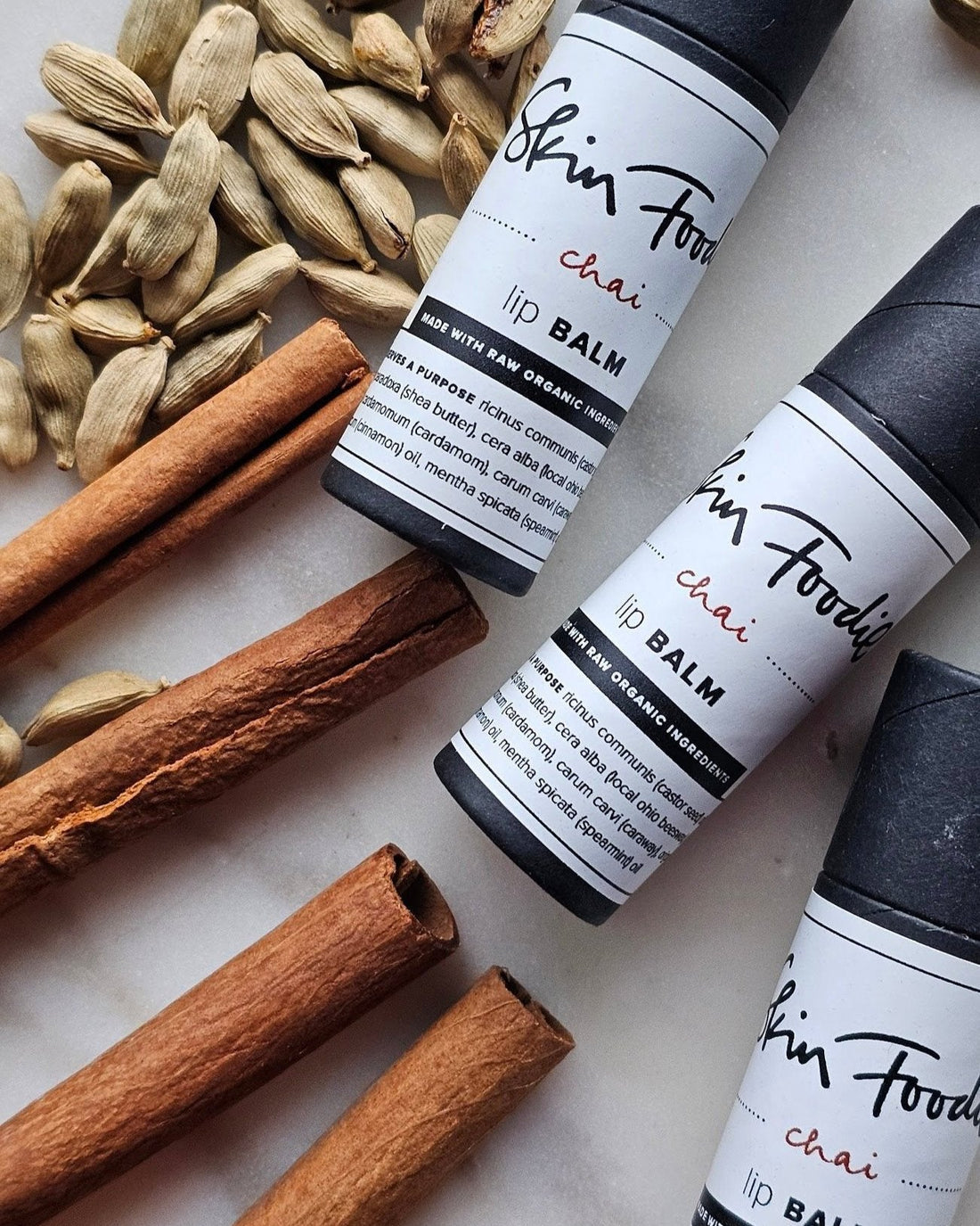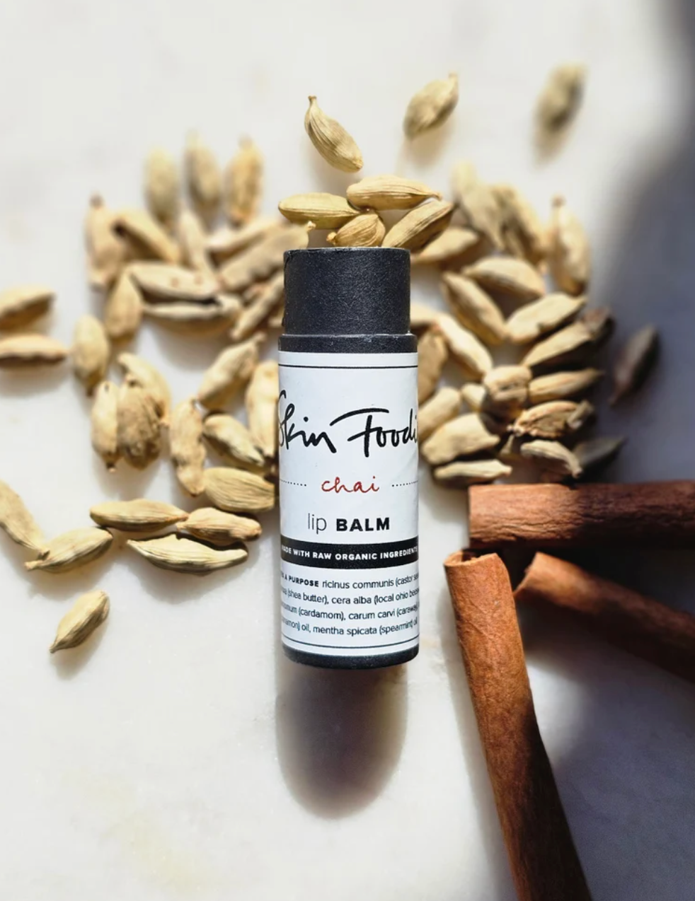 The chai is an all-natural lip balm with a unique blend of ingredients, each selected for its beneficial properties to keep your lips hydrated, soft, and protected. Rich castor and coconut oils provide intense moisture, while nourishing shea butter restores and smooths. Locally sourced Ohio beeswax forms a protective barrier, ensuring long-lasting hydration. Infused with a tantalizing mix of chai spices, including tarragon, cardamom, caraway, origanum, cinnamon, and spearmint, this balm offers a delightful aromatic experience that soothes your senses and your lips.