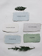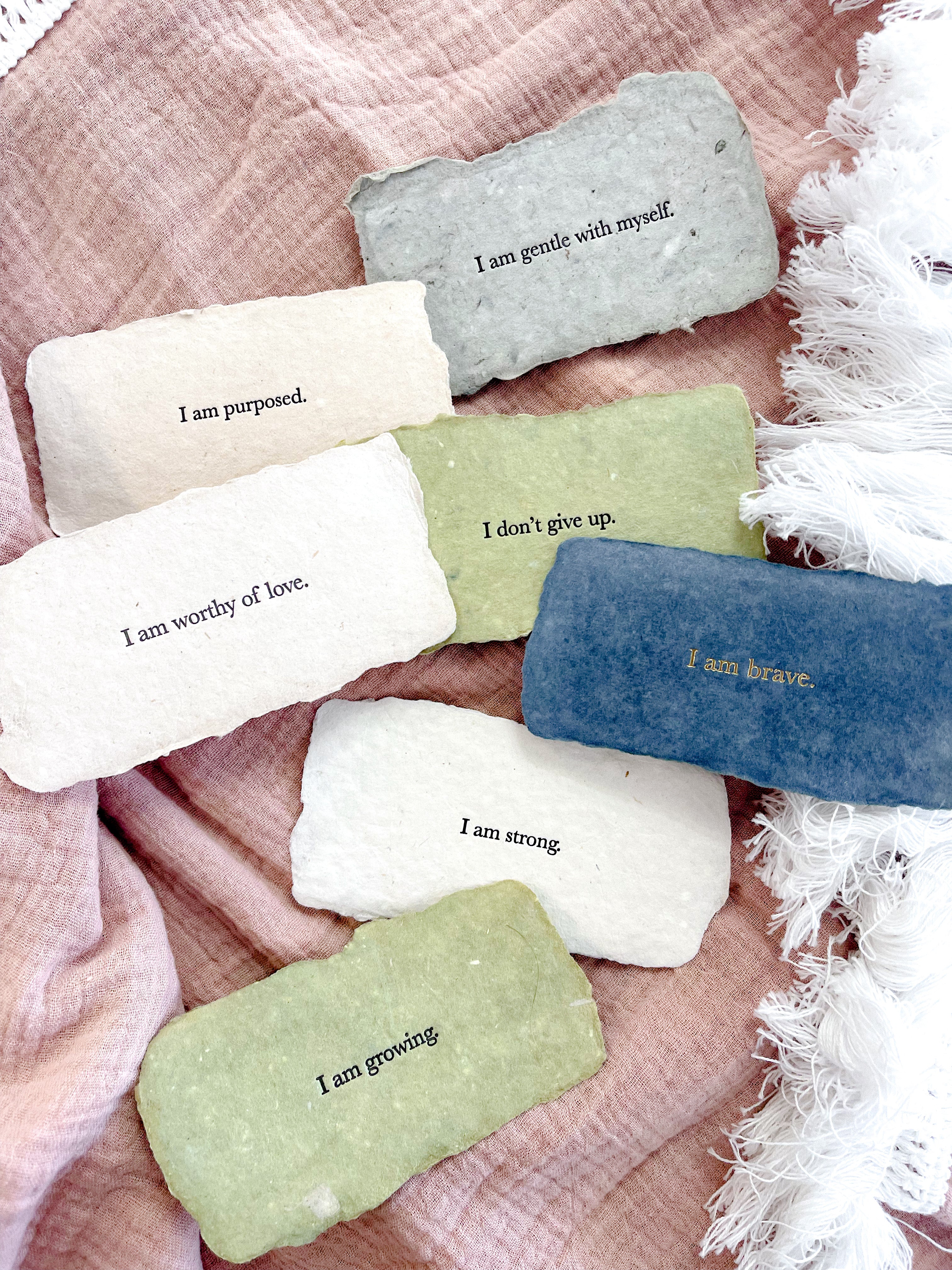 The things you tell yourself about yourself shape who you are and who you will become. This handmade paper affirmation is meant for your mirror, desk, wall, or any place where a little note-to-self will be a pretty reminder worth saying over and over.