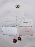 The things you tell yourself about yourself shape who you are and who you will become. This handmade paper affirmation is meant for your mirror, desk, wall, or any place where a little note-to-self will be a pretty reminder worth saying over and over.