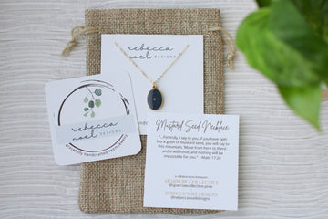 This tangible reminder features a real mustard seed in hand tinted epoxy clay, topped with clear resin. Gold charm is 24k gold plated and comes on a 18” gold filled chain.