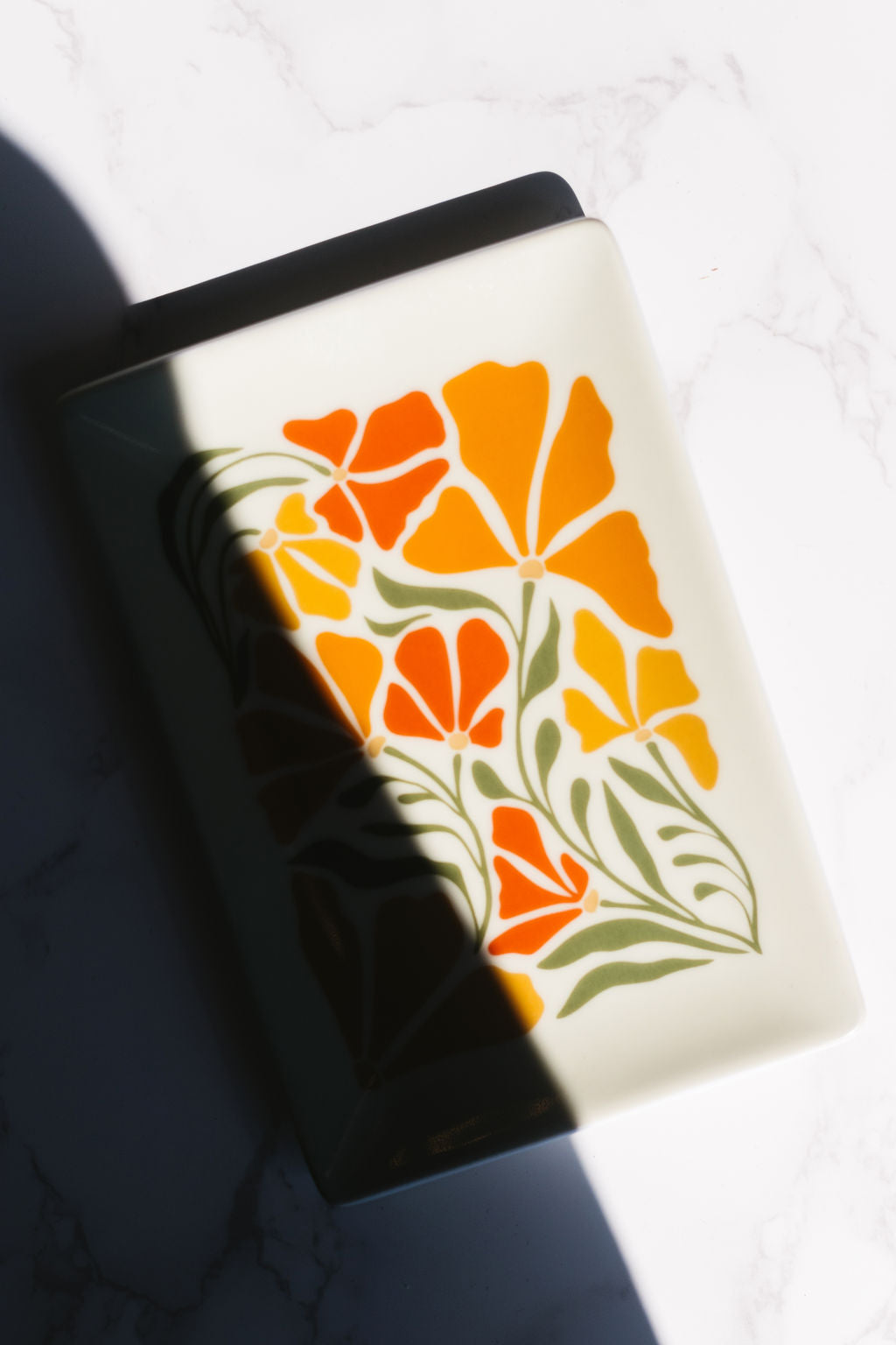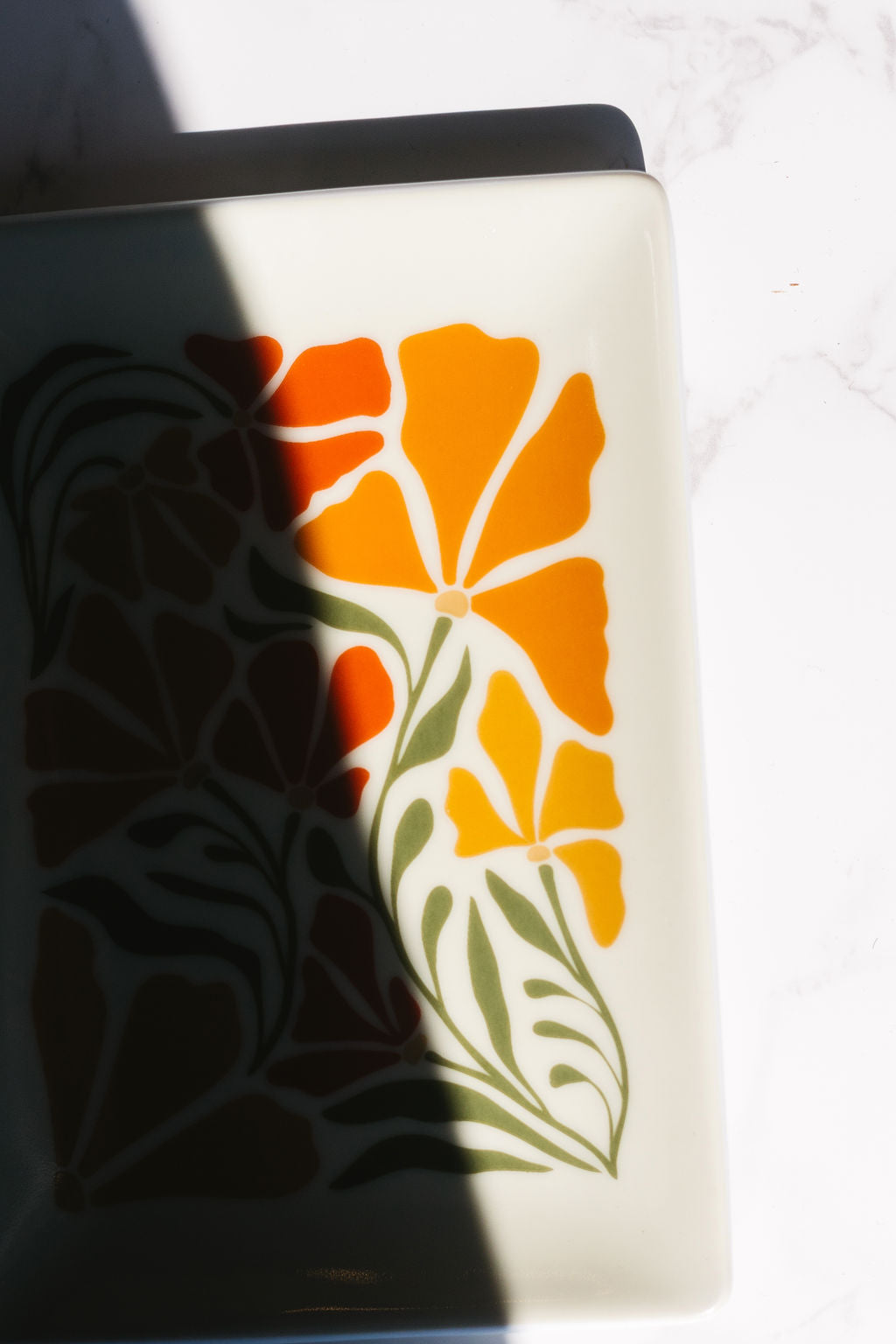 This charming porcelain tray adds a splash of floral fun to any space. Measuring 6.25" by 4.25", it’s perfect for holding trinkets or brightening up your decor. Remember, it’s hand wash only and not meant for food use!