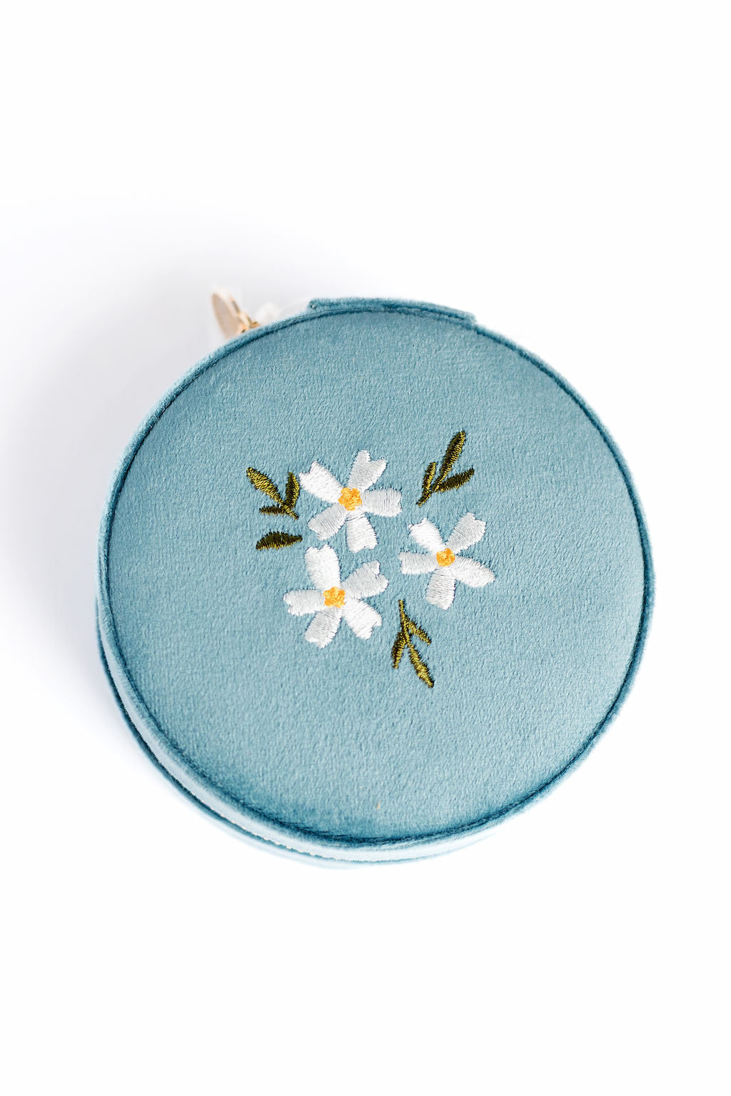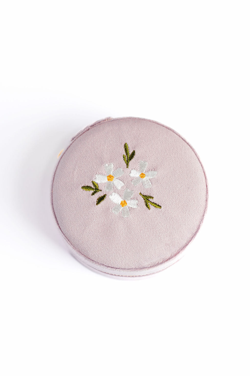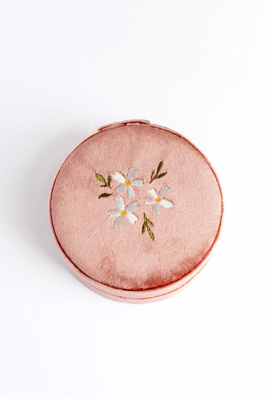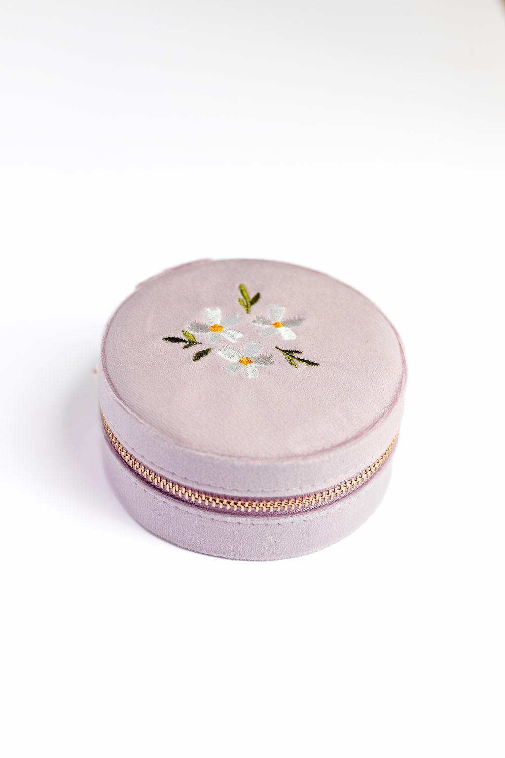 Round Velvet Floral Jewelry Case