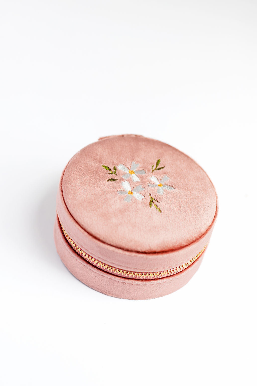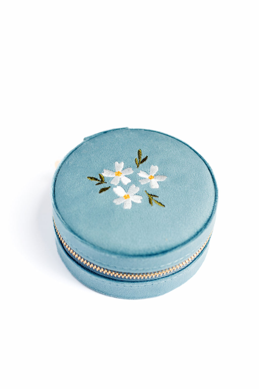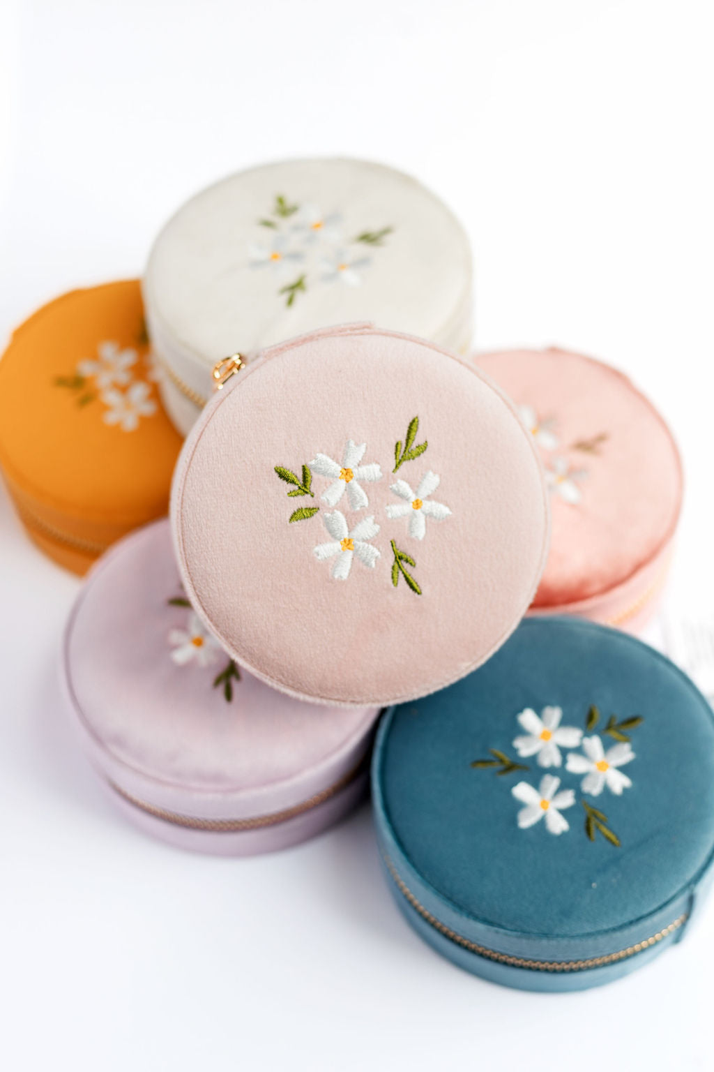 Round Velvet Floral Jewelry Case