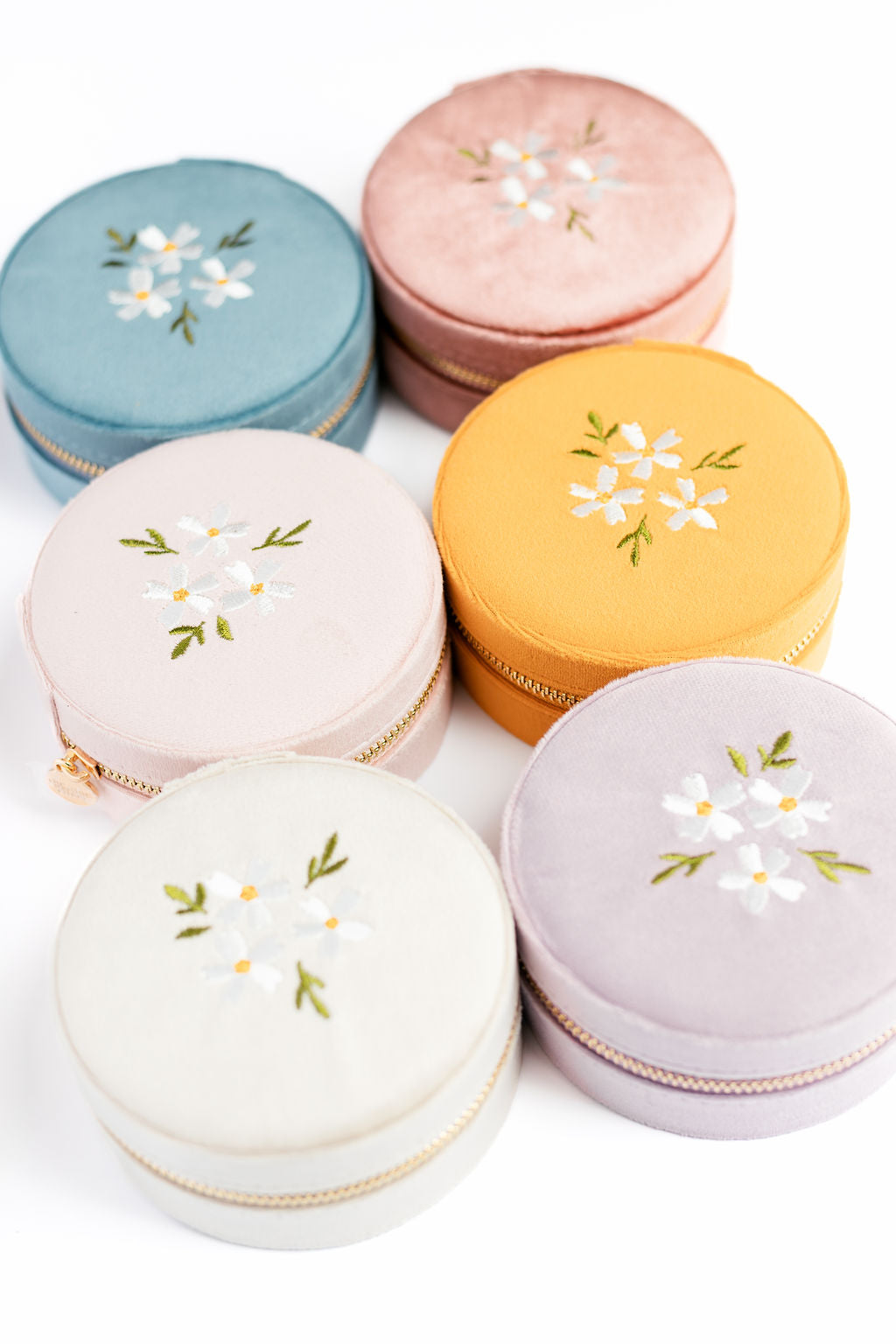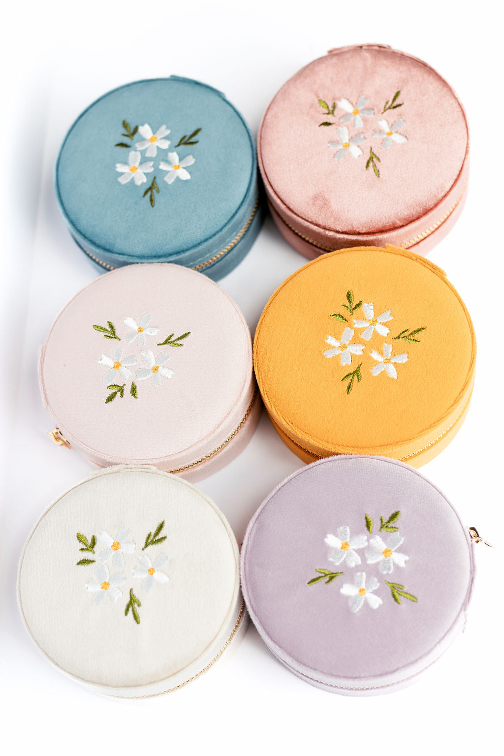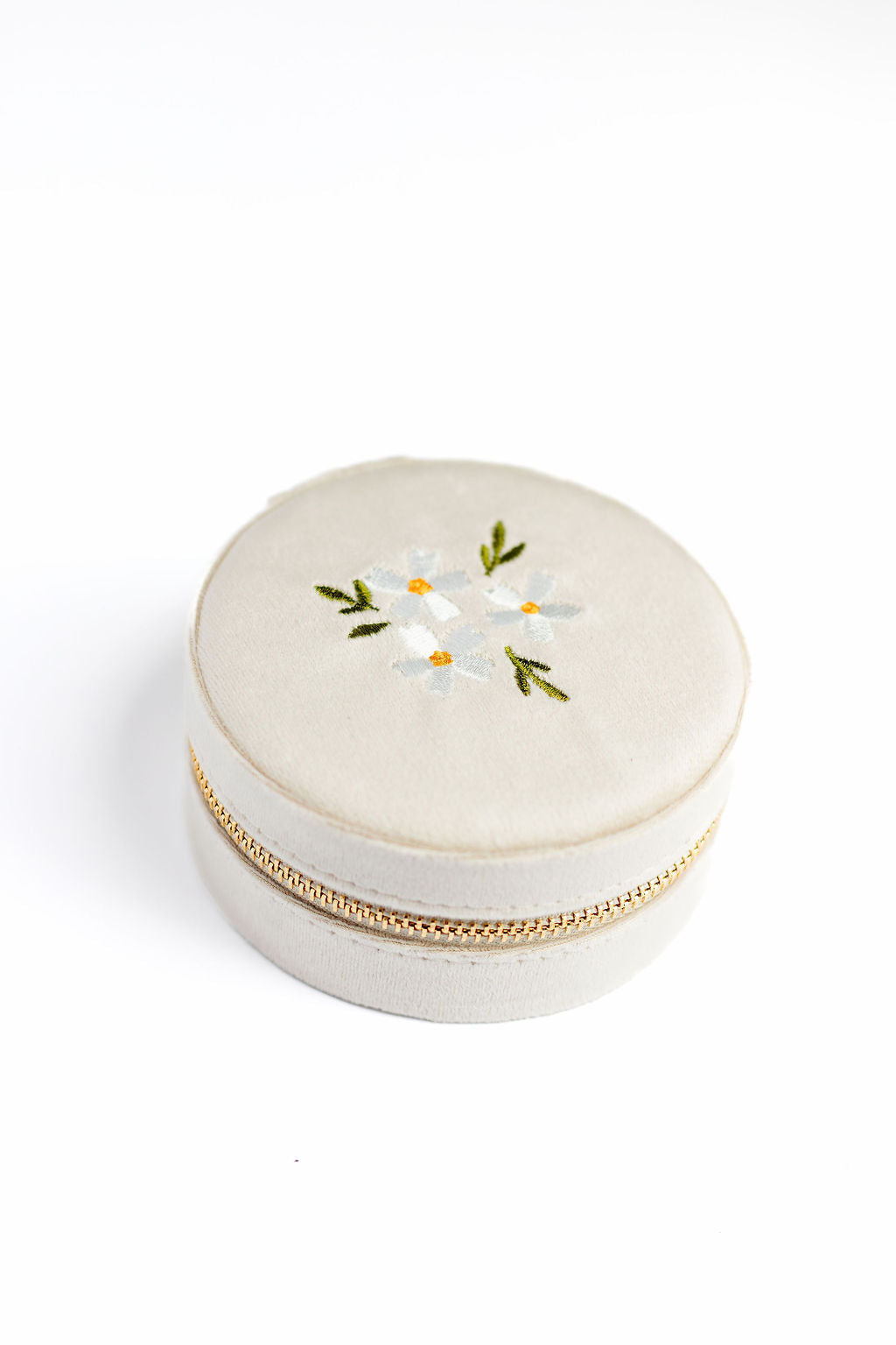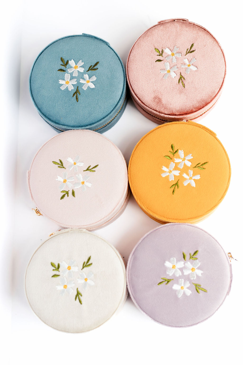 Round Velvet Floral Jewelry Case
