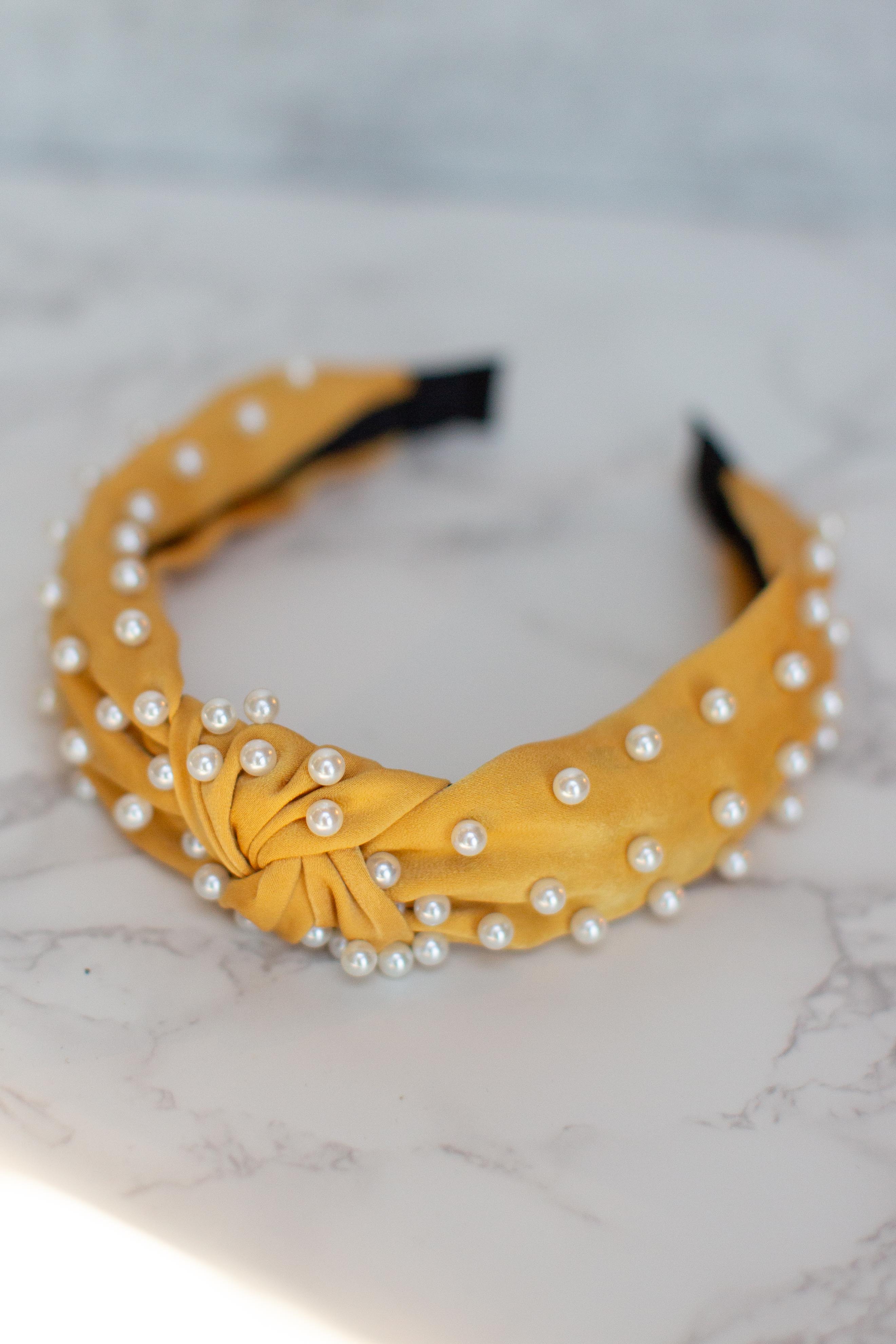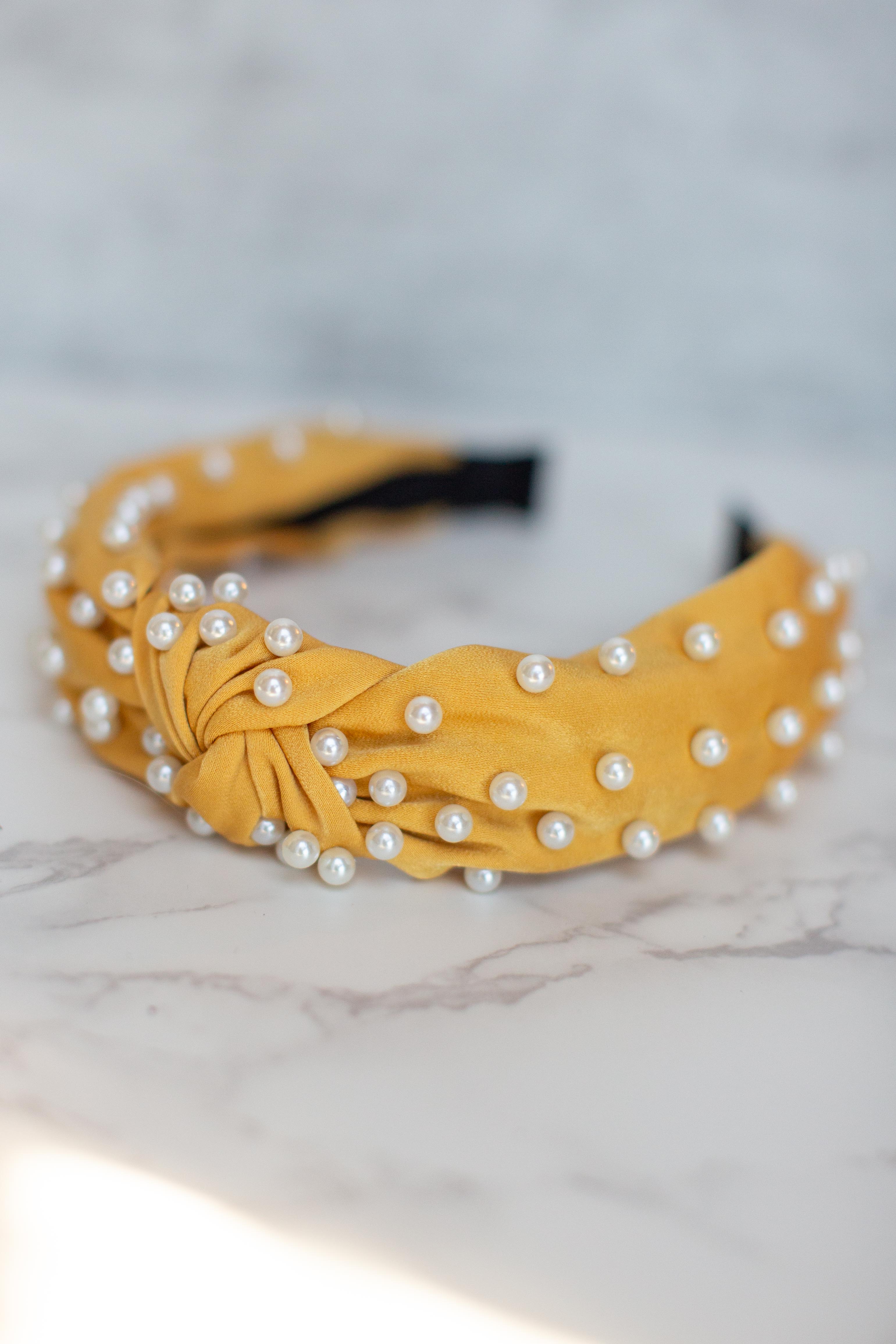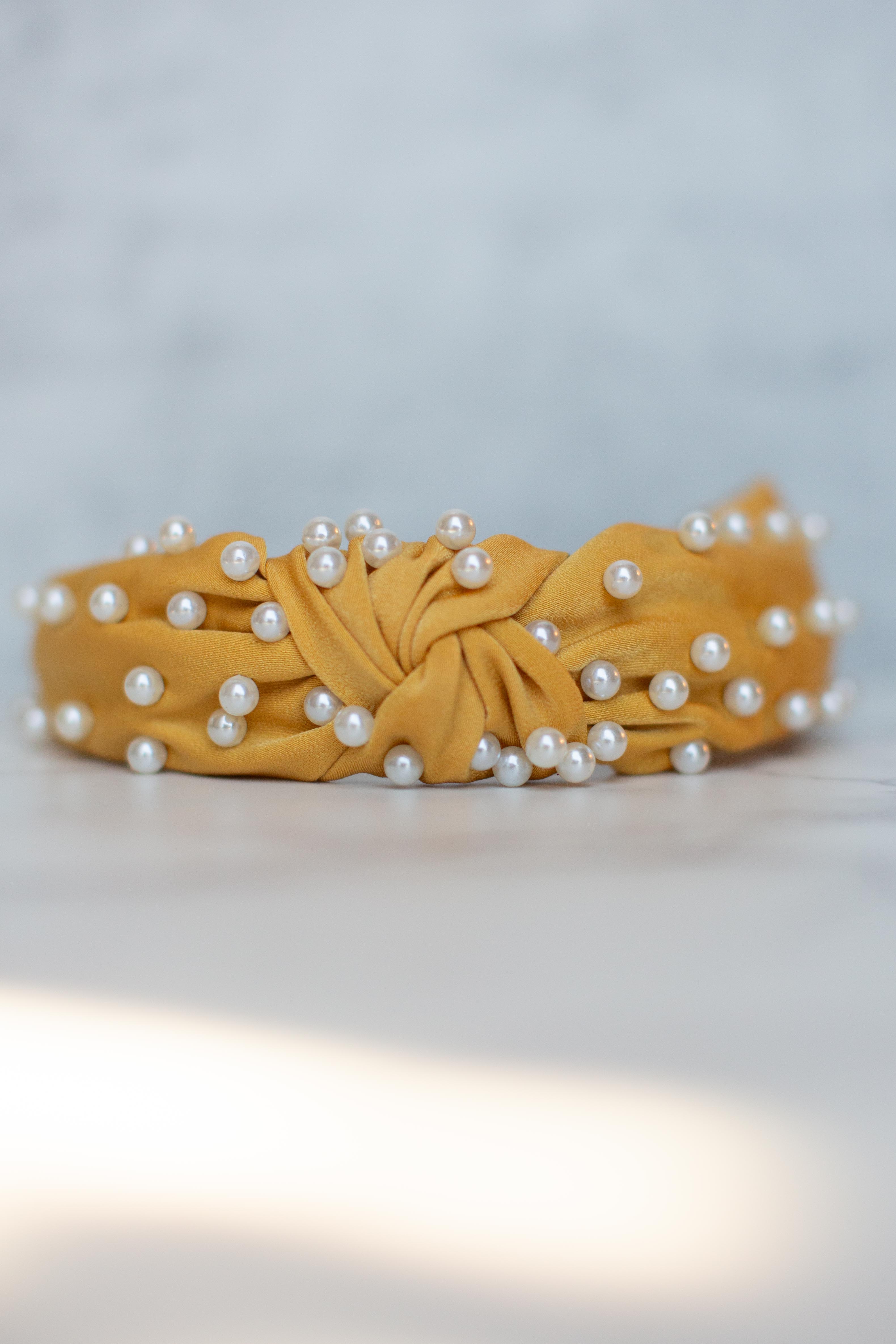 Brighten your look with the Mustard Pearl Studded Headband! This playful accessory combines the timeless elegance of pearls. Perfect for turning everyday hairstyles into something special and full of personality.