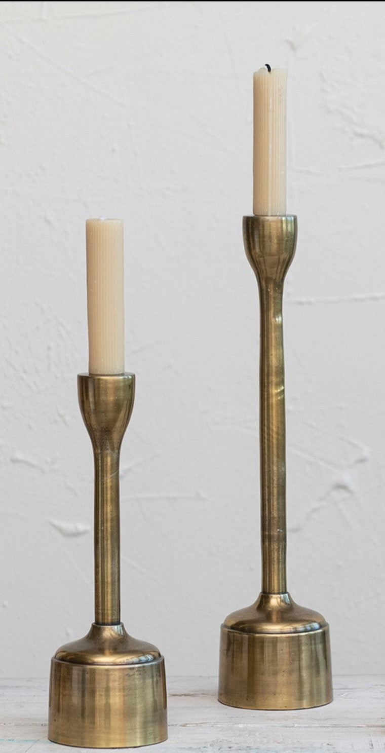 These antique brass taper holders are crafted with the highest quality material for a distinguished finish. Elegant and durable, these holders add an air of sophistication to any home décor. SOLD INDIVIDUALLY.