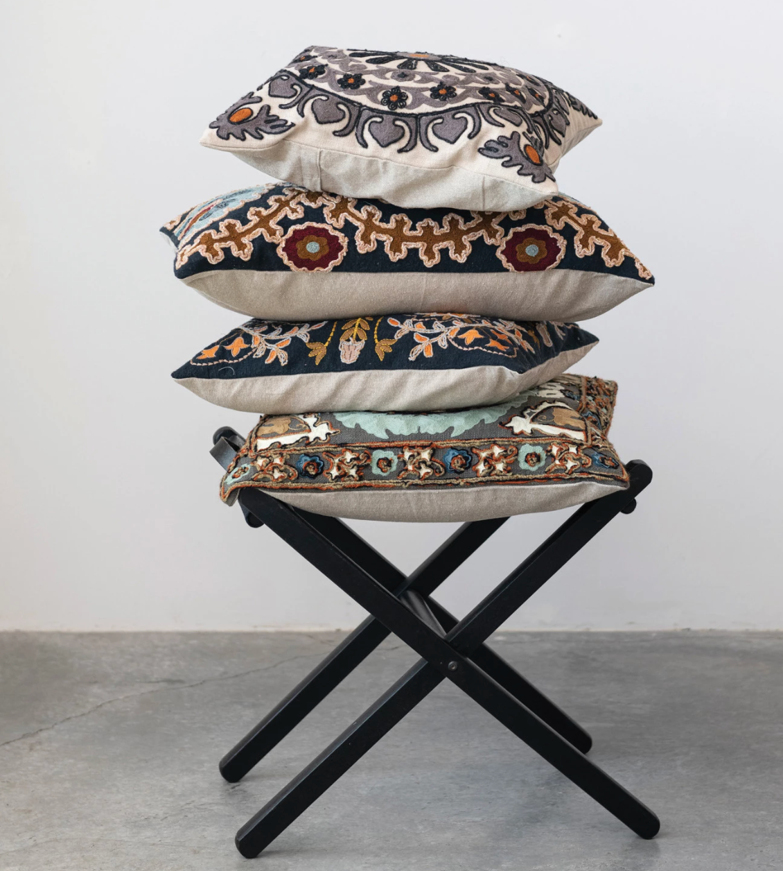 Ivory/Grey Suzani Embroidered Pillow
