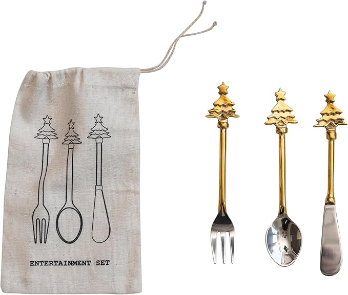 Add a touch of holiday magic to your entertaining with this charming set of 3 stainless steel appetizer utensils featuring sparkly Christmas tree handles. Perfect for serving cheeses, spreads, and small bites at your holiday gatherings, these practical utensils come with a festive drawstring storage bag that makes them an ideal gift. The dishwasher-safe design ensures easy cleanup after your celebrations.