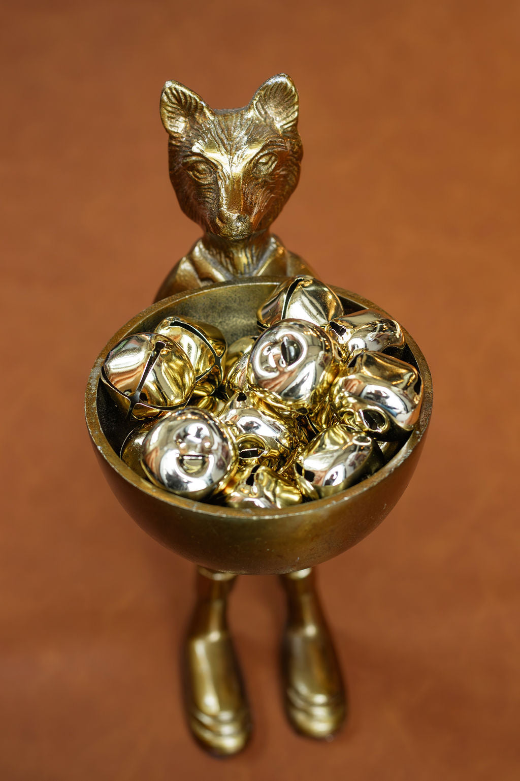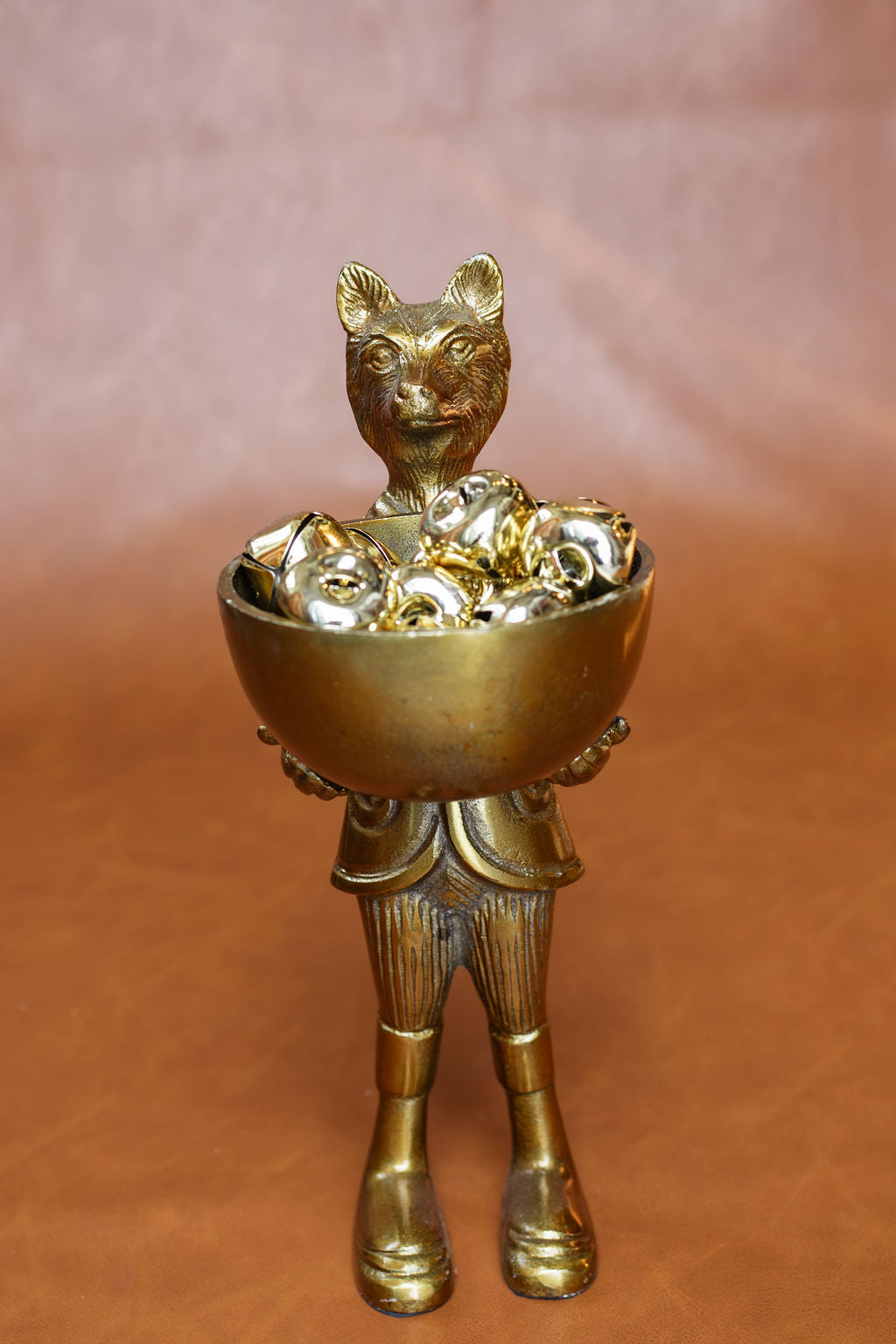 This metal stand featuring Eloise the fox is as practical as it is beautiful. With a beautiful brass-gold finish and a bowl for display or gifts, this piece is an instant classic with personality to spare.