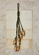 A set of enchanting green metal bells, finished in antique gold and suspended from a rustic jute rope, rings in the season with charm. An elegant statement piece, these bells blend seamlessly with both traditional and modern holiday decor. Ideal for gracing doorways or windows, their gentle chime is a reminder of the joy and spirit of the season.
