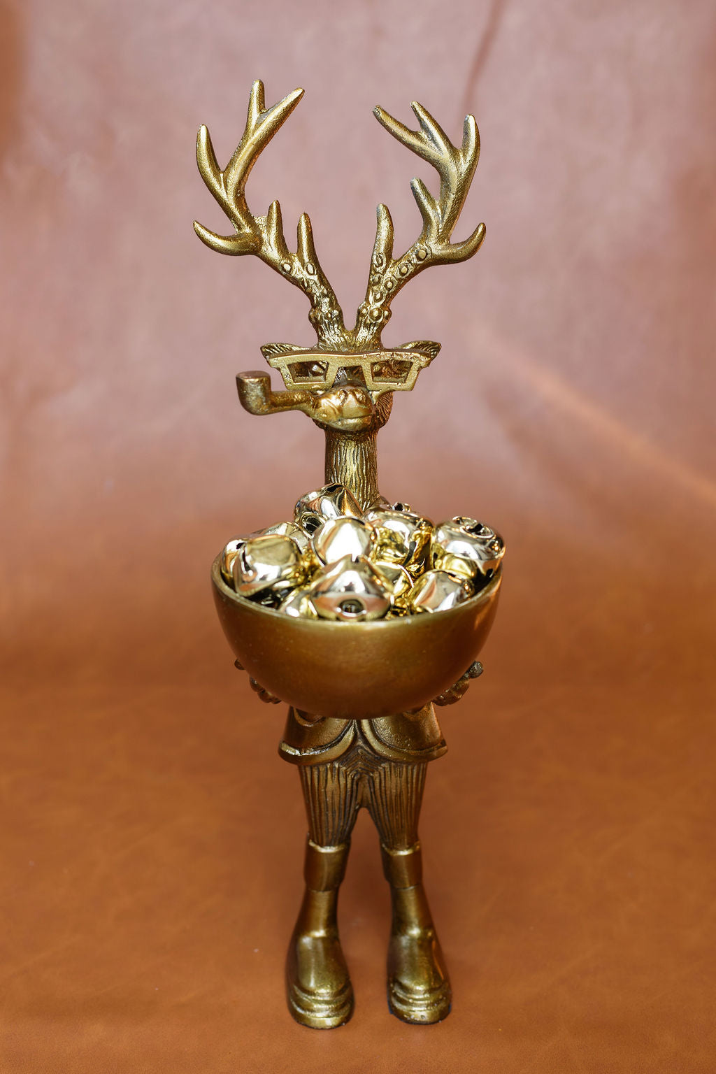 Meet Frankie, part of our E+E Dish Stand collection designed by artist Jessica Heimstra. This figurine features a dapper, bespeckled cast aluminum buck smoking a pipe & holding a dish that's ideal for wrapped candies or small floral arrangements.