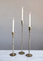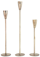 These taper holders effortlessly add an ambient and classy vibe to holiday dinners or mantles. They a huge and beautiful statement! Made out of metal each have an antique gold finish. Perfect for dim lighting for holiday parties or that cozy mantle glow.