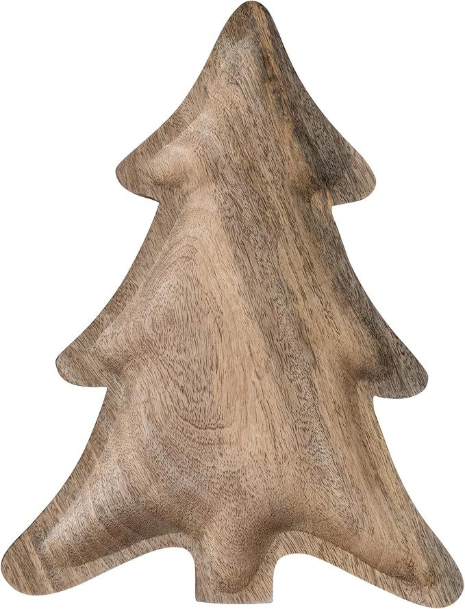 Bring natural charm to your holiday entertaining with this beautifully crafted mango wood tray in a festive tree shape. Perfect for serving appetizers or displaying decorative items, this durable tray adds rustic elegance to your seasonal decor.