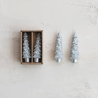 Add a touch of elegance to your holiday decor with these beautiful silver tree-shaped taper candles. Standing 4-3/4 inches tall, these unscented paraffin wax candles provide approximately 3 hours of burn time each. Perfect for creating a festive atmosphere, these specialty-shaped candles feature a unique Christmas tree silhouette that makes them ideal for holiday table settings or mantel displays.