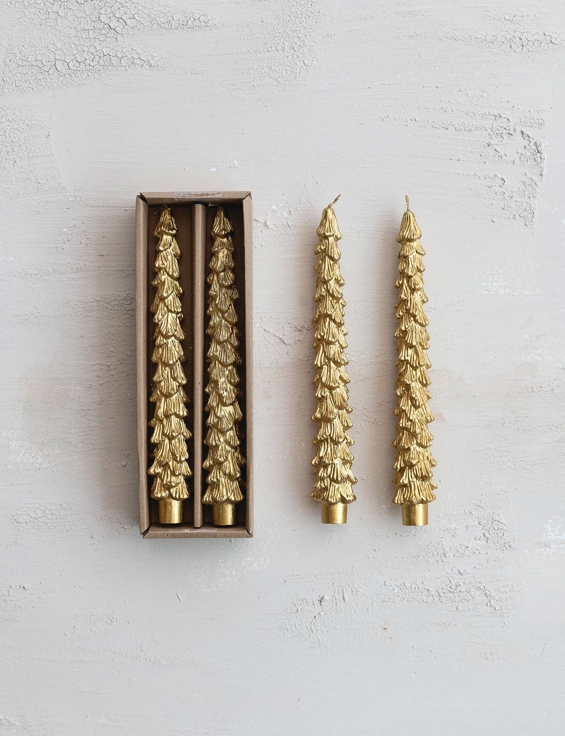 Create a stunning holiday display with these elegant 10-inch gold tree-shaped taper candles. Unscented paraffin wax candles that burn for up to 8 hours, providing long-lasting ambiance for your seasonal celebrations. The distinctive Christmas tree shape adds a playful yet sophisticated touch to your holiday decor, making them perfect for special occasions or as eye-catching centerpieces.
