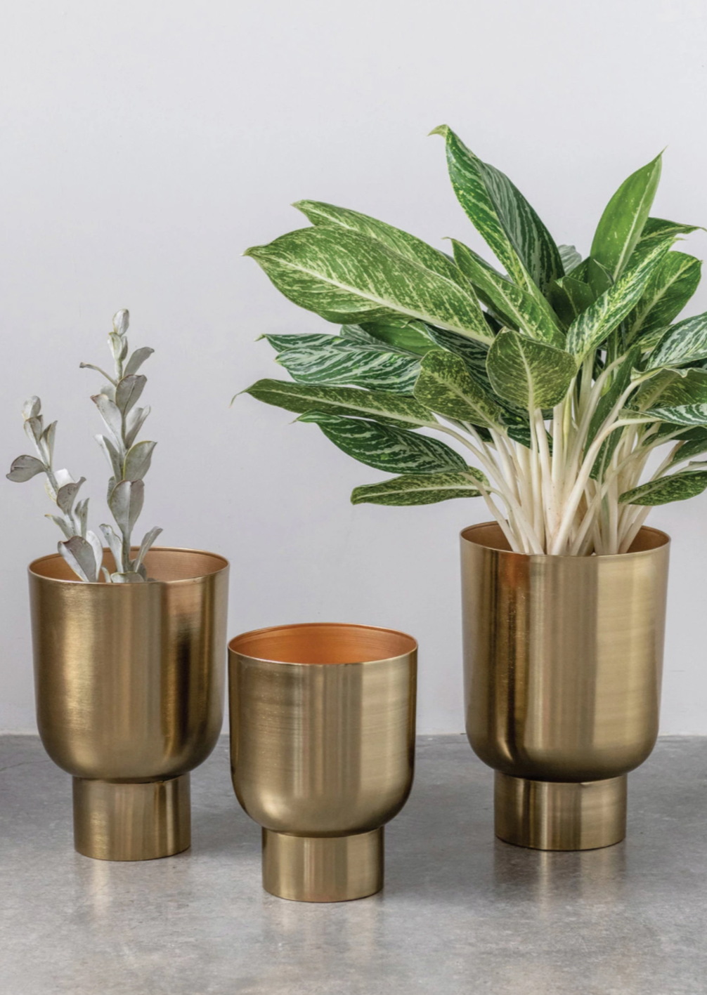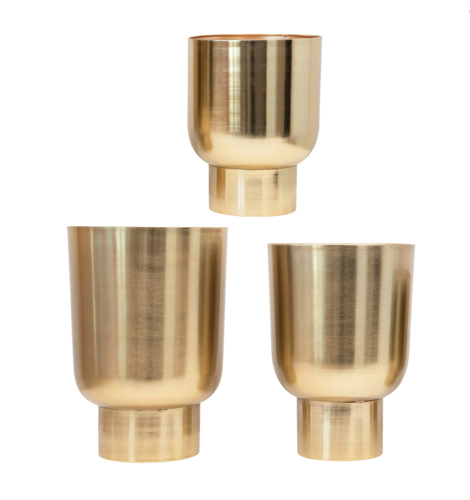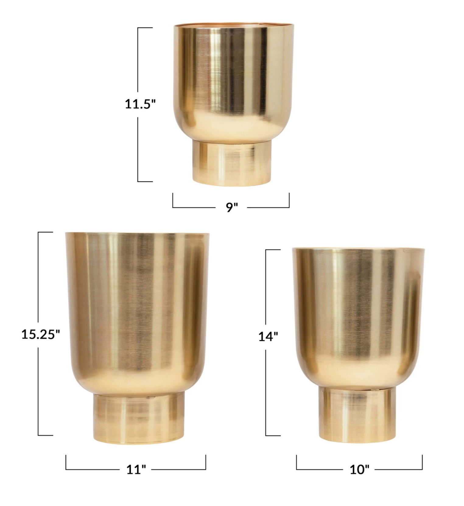 These handsome and agreeable metal planters come as a set of three. This stately collection is perfect for a bedroom, living room, kitchen, or sunroom. And it complements a wide range of home decor styles. Beautiful modern style brass planters - sold separately in 3 sizes.