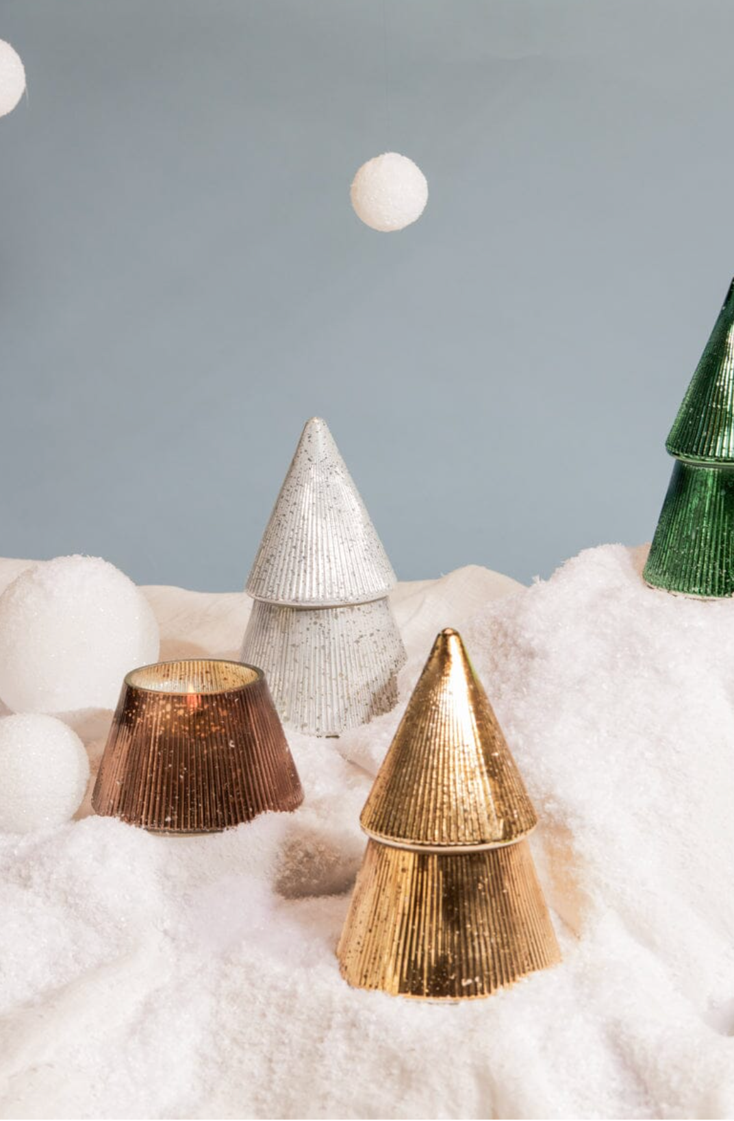 These glass candles in shimmering colors are sure to make a statement in any home.