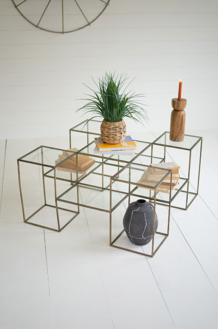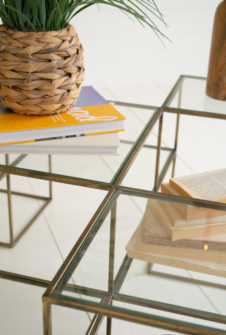 Glass & Antique Brass Cube Coffee Table (Pickup Only)