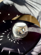 Boogie on into the new year with these hand-crafted glass mirror ball candles inspired by disco! These glistening candles, offered in four shades of color, double as a dazzling piece of home decor. Repurpose the candles into a pencil cup or vase after the wax burns through!