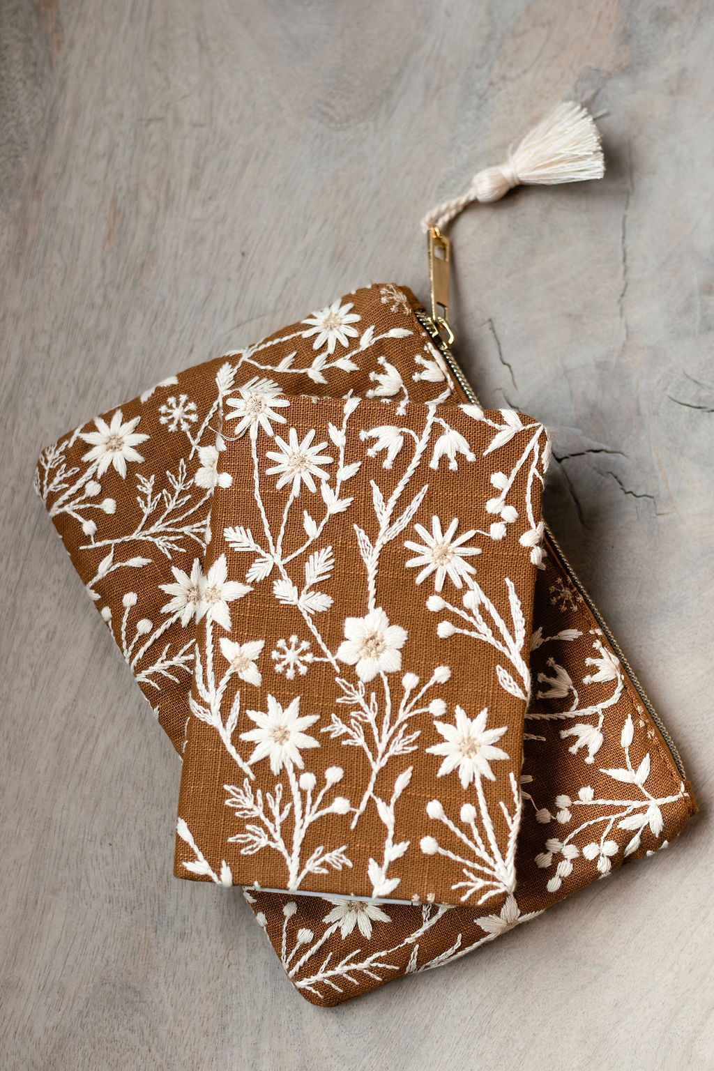 Random thoughts, big plans, travel stories, hopes and dreams. Jot or journal your inspirations in this elegant, embroidered, hardcover journal.