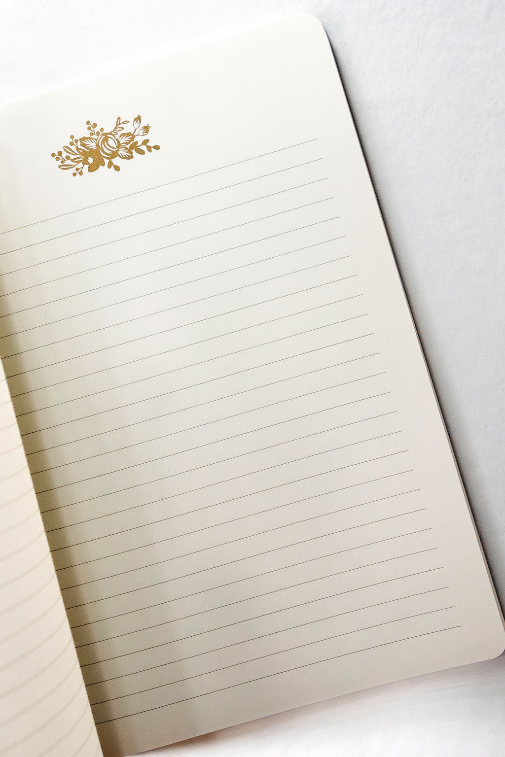 A lightweight, softcover journal, perfect for work, school, and other daily tasks. Inside find 150 lined pages and a grosgrain ribbon bookmark.