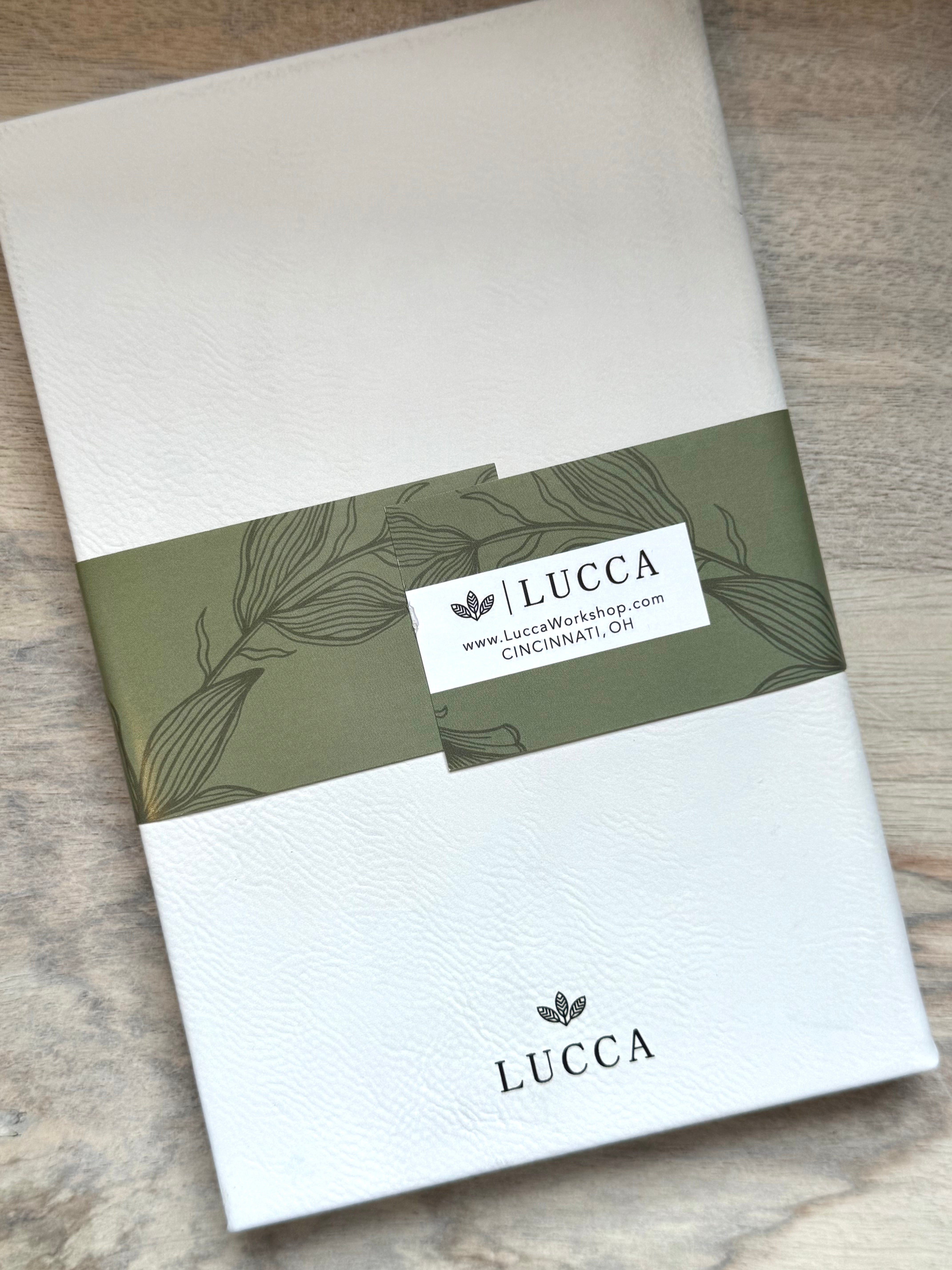 THE DETAILS ↠ Soft Faux Leather Cover ↠ Sizing: 5 1/4" x 8 1/4" x 3/4" ↠ Engraved In-House ↠ Wide Ruled Pages ↠ 160 Pages