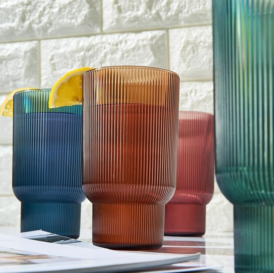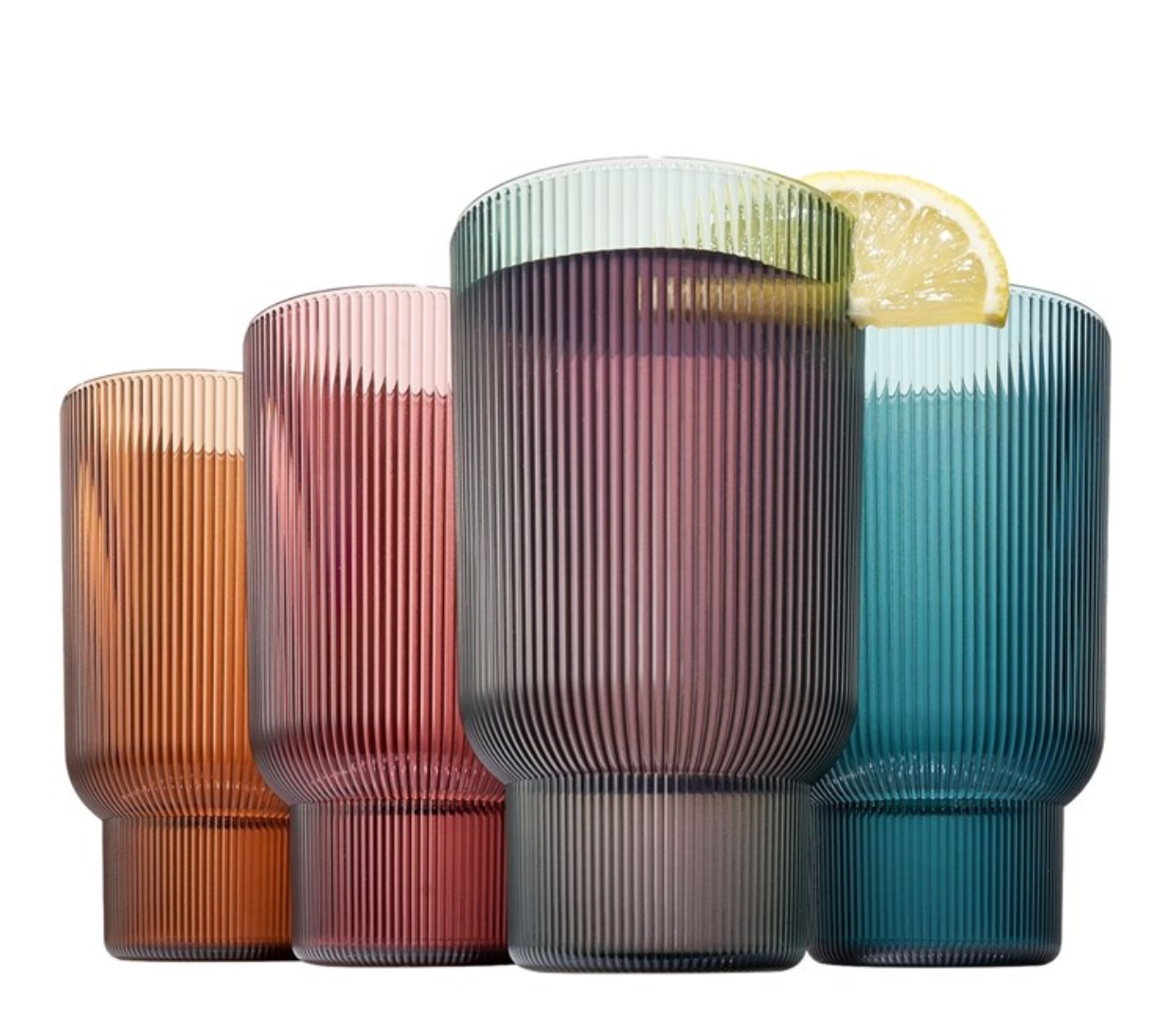 Each highball glass in this set boasts a sleek ribbed design and is generously sized, with the capacity to hold up to 14.5 ounces of your preferred beverage. These glasses are not limited to water; they are versatile enough to accommodate a wide range of drinks, from classic iced water and lemonade to your favorite cocktails or mocktails.