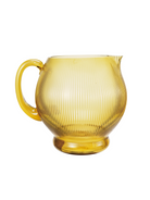 This ribbed glass pitcher in amber is a gorgeous and functional piece that will impress guests and family. It features a ribbed glass design that creates a textured and elegant look. The pitcher has a warm amber color that reflects the light beautifully and adds some warmth and coziness to the home. The pitcher has a round shape and a curved handle that make it easy to hold and pour. The pitcher can be used to serve water, juice, lemonade, or any other beverage of choice, or to display flowers, plants, or other decorative items. The pitcher is made of high-quality and durable glass that is easy to clean and care for. The pitcher has a capacity of 2.5 quarts. This amber ribbed glass pitcher is an excellent choice for self-care or gifting to someone special.