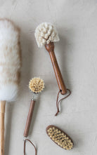 Keep your kitchen clean in style with this practical beech wood dish brush. Crafted from natural beech wood in a rich dark brown color, it features sturdy bristles perfect for tackling stubborn food and grime on dishes and cookware. The charming leather tie adds a rustic, functional touch.