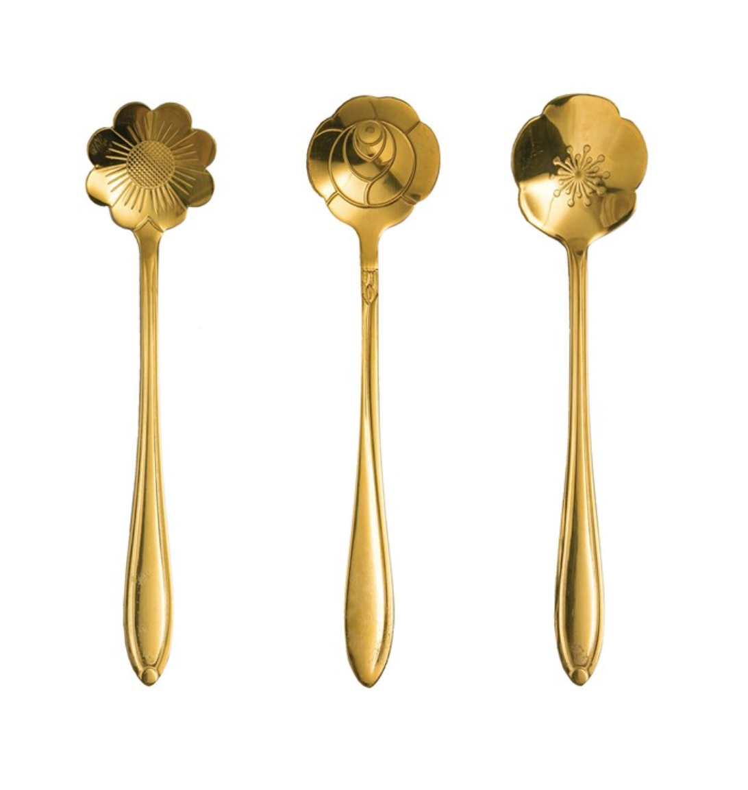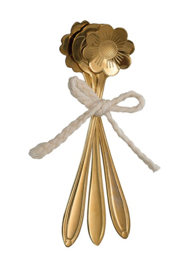 The cutest 3-piece bouquet of golden spoons! Perfect for daily use in coffee, or for our sweet little tea party! With flower shaped scoops, they come in a set of three with a rich gold finish.