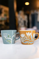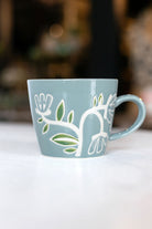 This cottage-inspired stoneware mug showcases an organically shaped silhouette with hand-painted floral designs. This piece is food safe. Dishwasher safe. Made from stoneware.