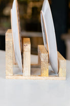 Our mango wood stand is crafted with beautiful, sturdy mango wood, perfect for displaying plates, cutting boards, serving boards and cook books with style. Its classic design adds a timeless elegance to any room.