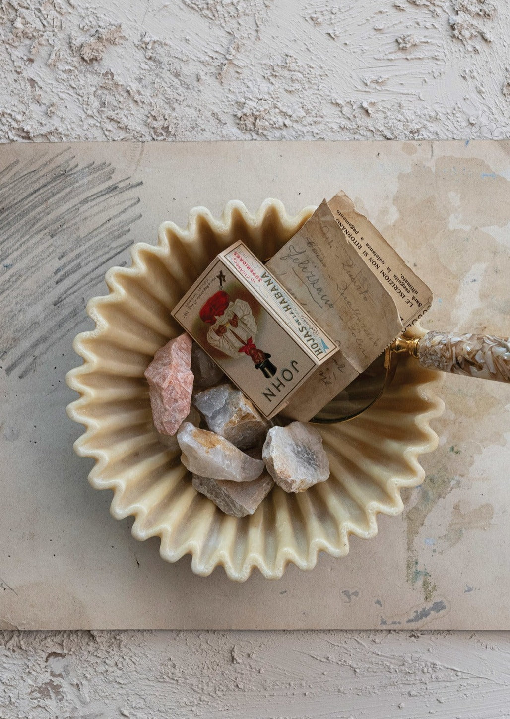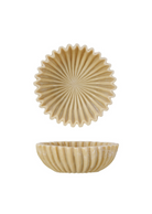 This beige resin fluted bowl is a beautiful and functional piece that will enhance any space in the home. The bowl has a round shape and a fluted design that adds texture and dimension to its surface. The bowl has a beige color that blends well with any color scheme and creates a warm and cozy atmosphere. The bowl is made of resin, which is a sturdy and lightweight material that can last for a long time. Use this bowl for various purposes, such as storing the small items or displaying it as an artistic piece.