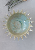 One of our favorites! This stoneware sunburst serving bowl is a unique and beautiful piece. It's opal reactive glaze makes it perfect for a beach inspired home and its unique shape adds a sense of style to any home. This serving bowl will make a statement as a centerpiece and will add to the overall feel of any room. Food safe.