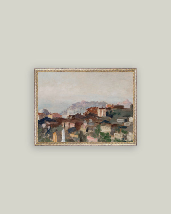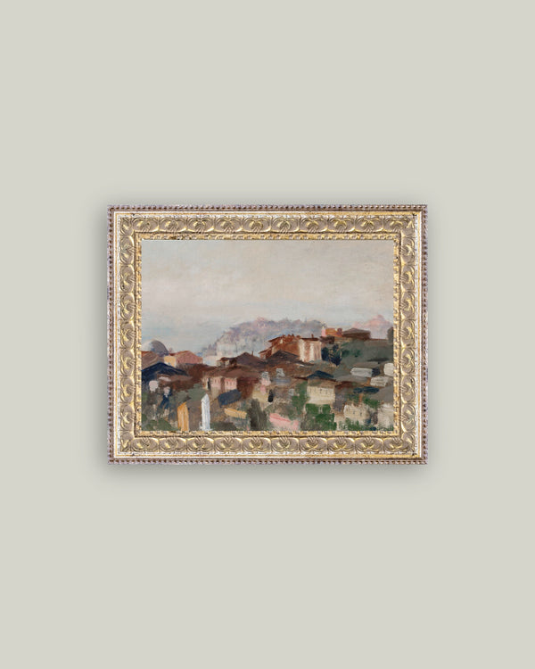This vintage artwork is printed on raw canvas and placed in an antique frame for an authentic, timeless look.