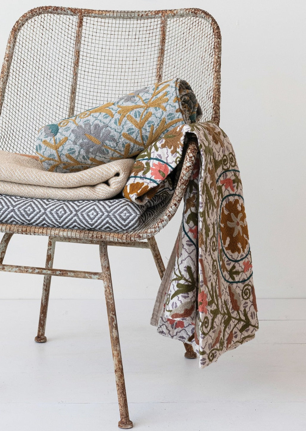 Bohemian Embroidered Throw Blanket - Warm Tones