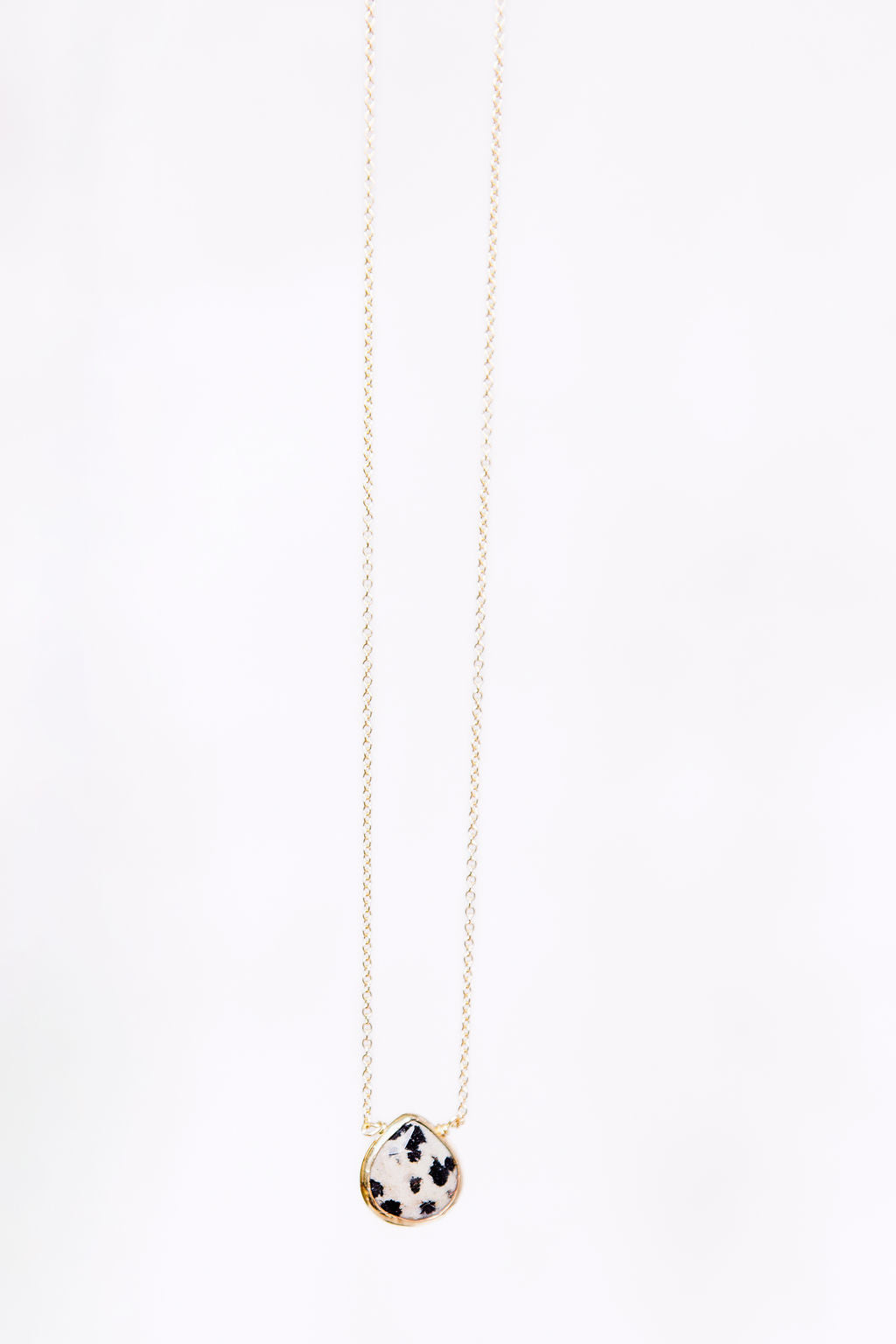 Love funky patterns? Us too! Dalmatian Jasper is one of our absolute favorite statement gemstones. While she looks great as a little statement piece, our favorite way to wear her is layered over a bold outfit of stripes and patterns.