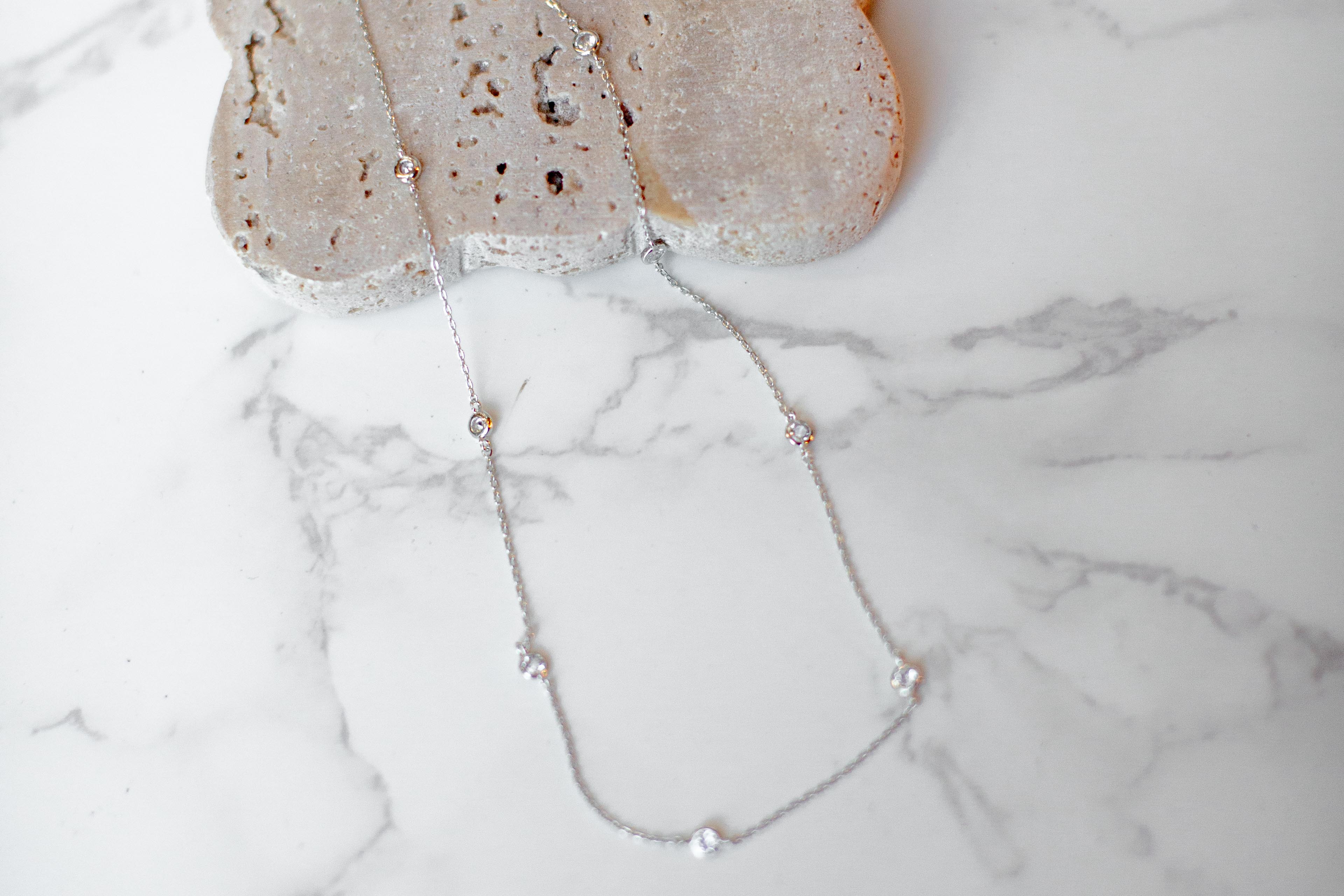 Add some sparkle to your style with the Silver Cubic Zirconia Dotted Necklace. This unique and playful necklace features dazzling cubic zirconia dots, perfect for any occasion. Elevate your look with a touch of shimmer and shine (without breaking the bank).