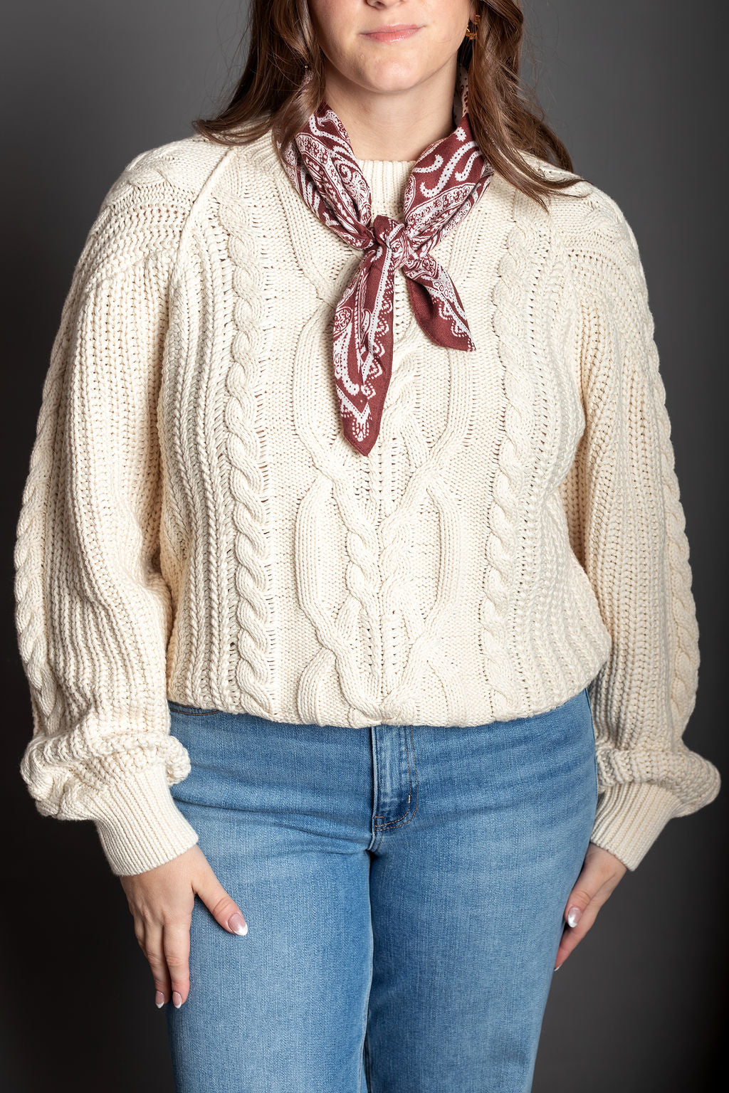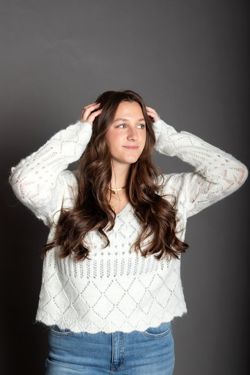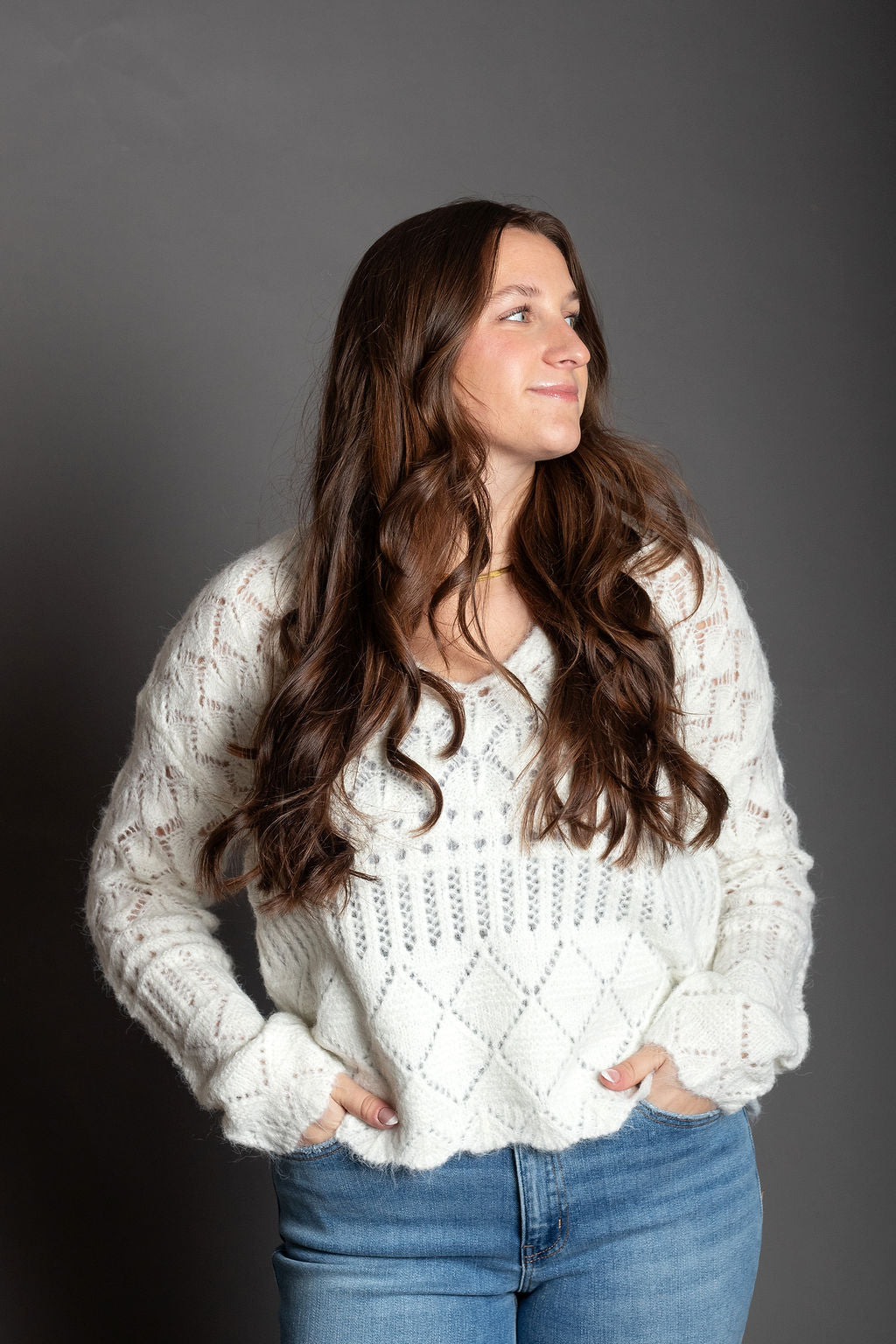 Auggie Stripe Wide Collar Sweater - Ivory/Grey