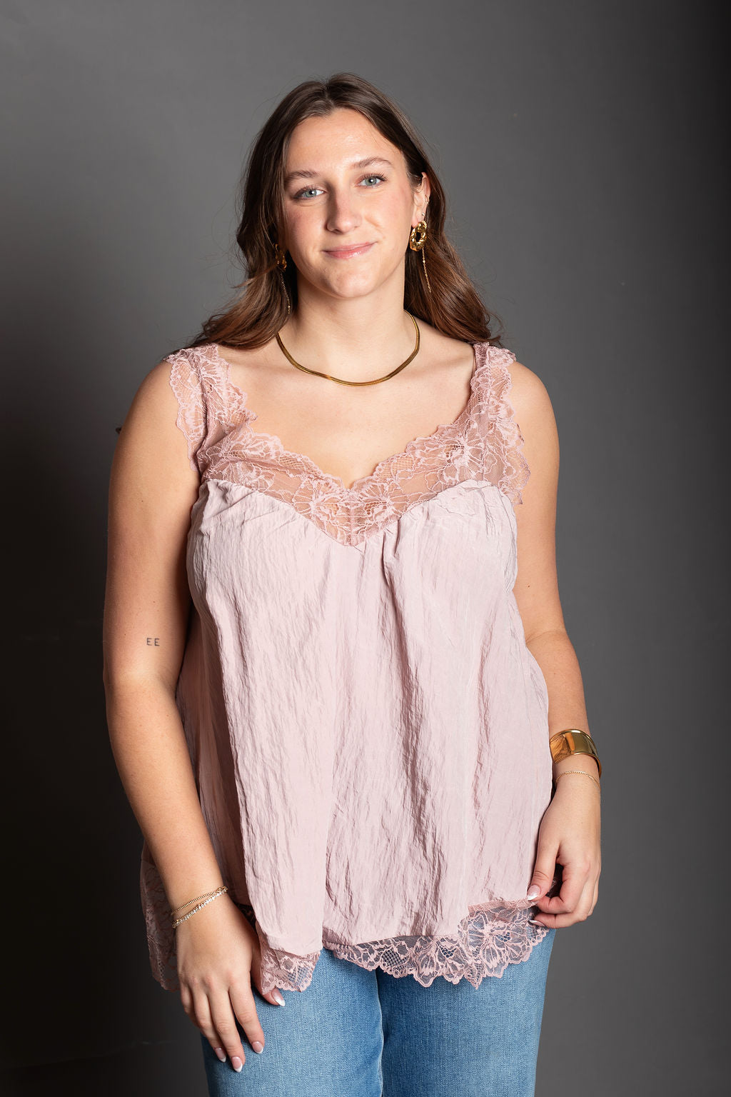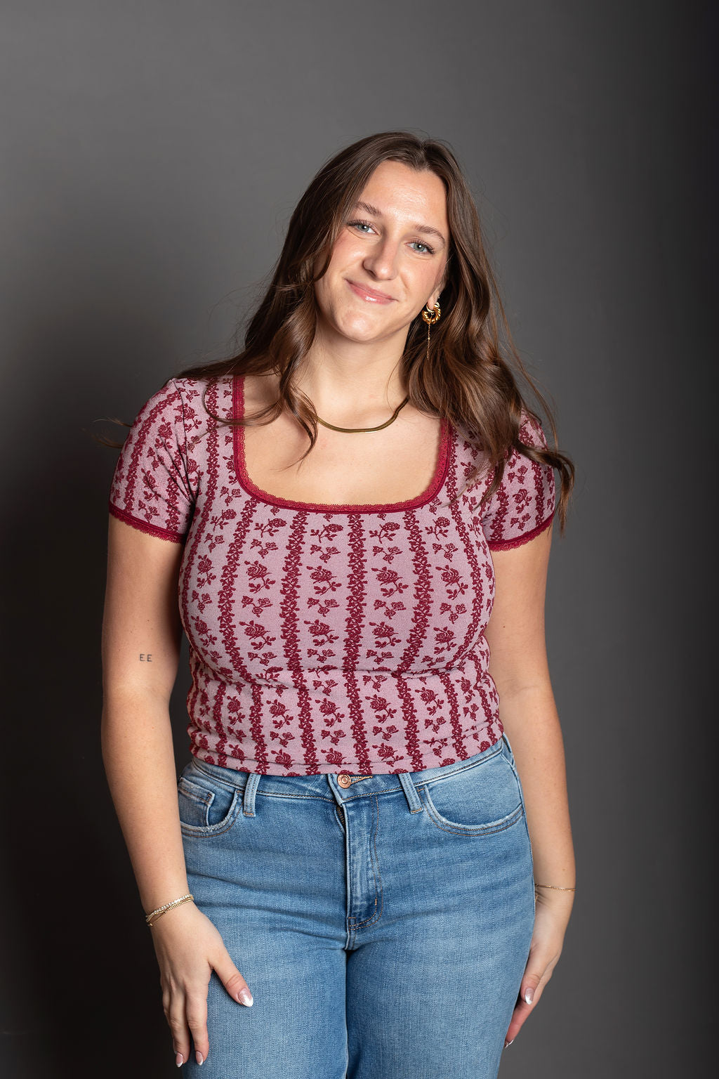 Harlow Lace Trimmed Floral Tee - Raspberry