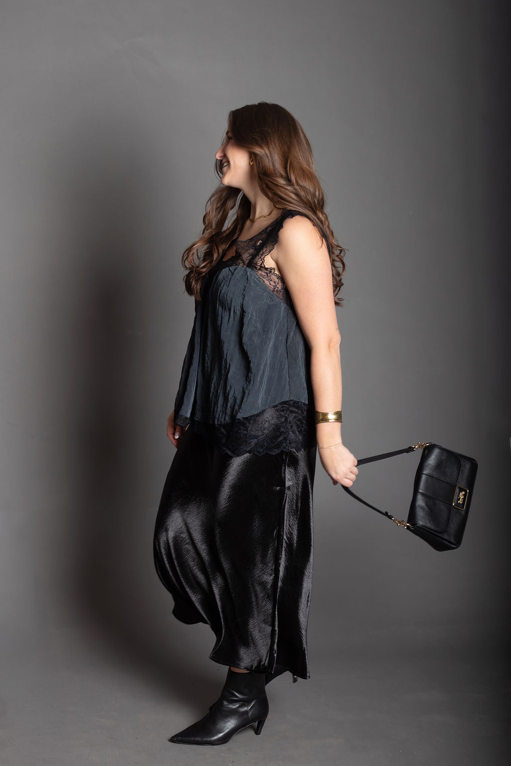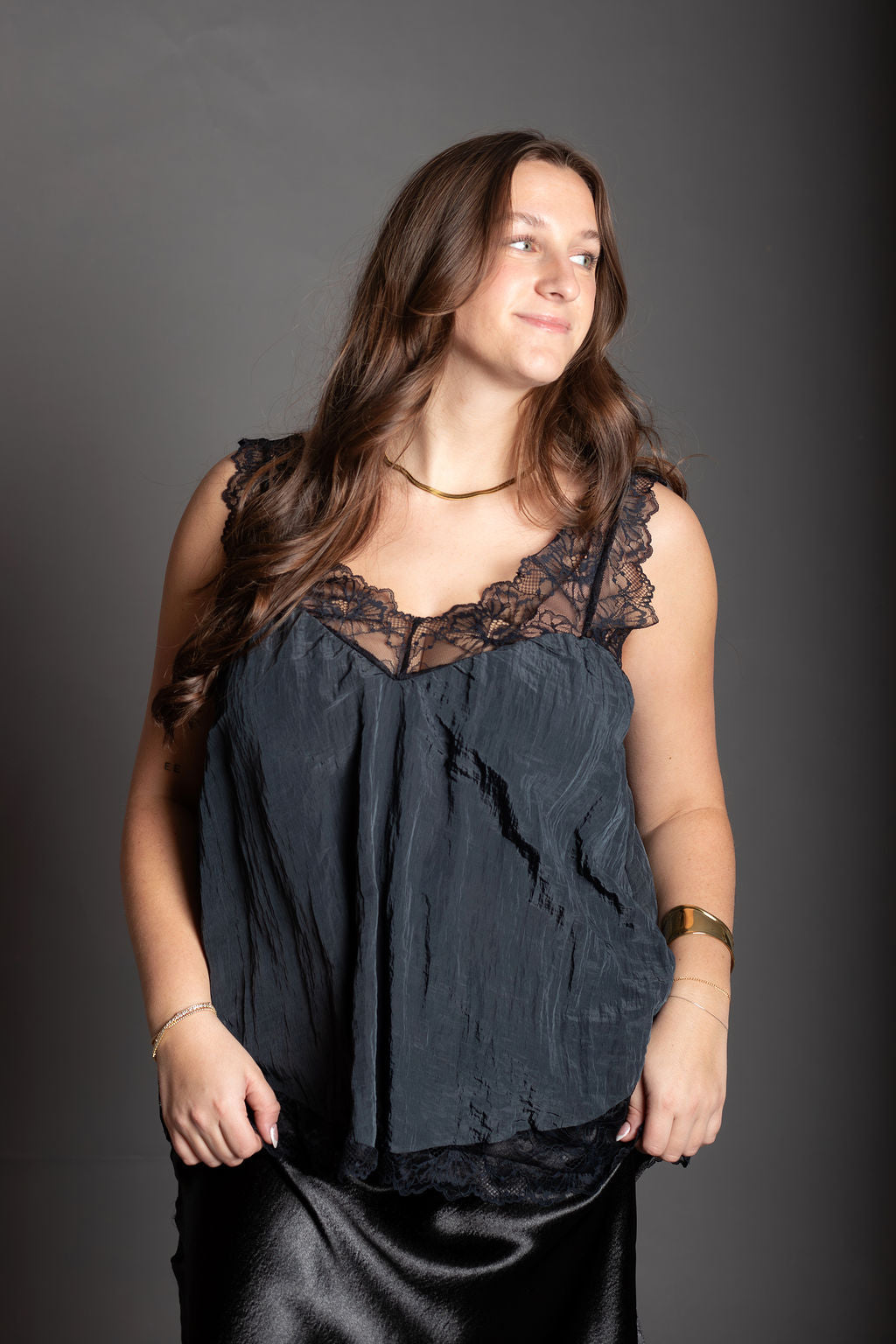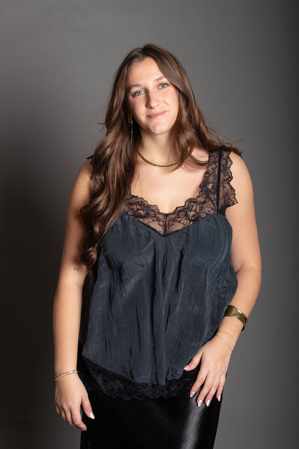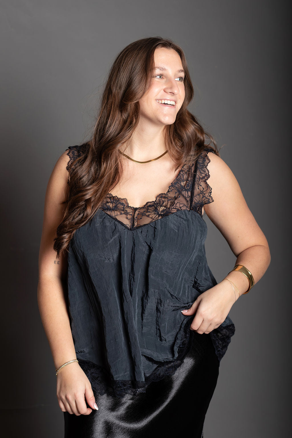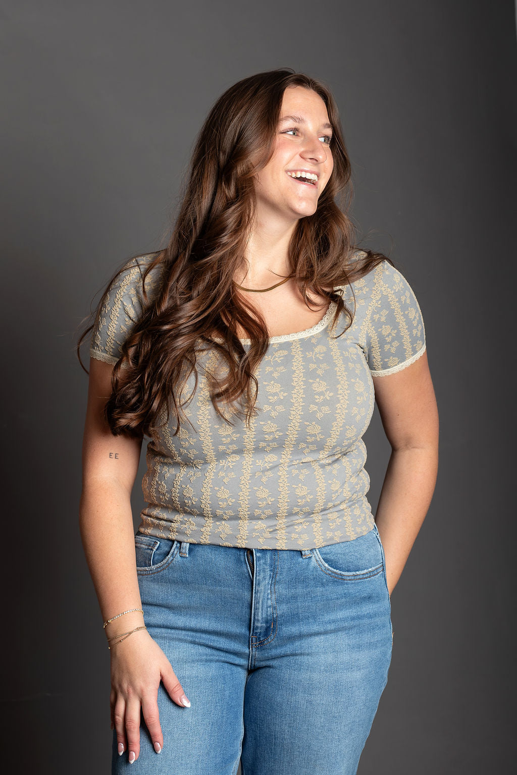 Harlow Lace Trimmed Floral Tee - Lt Grey