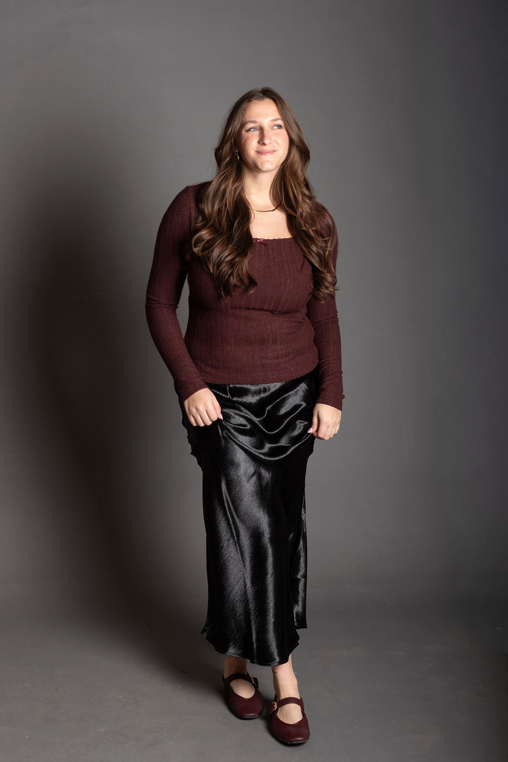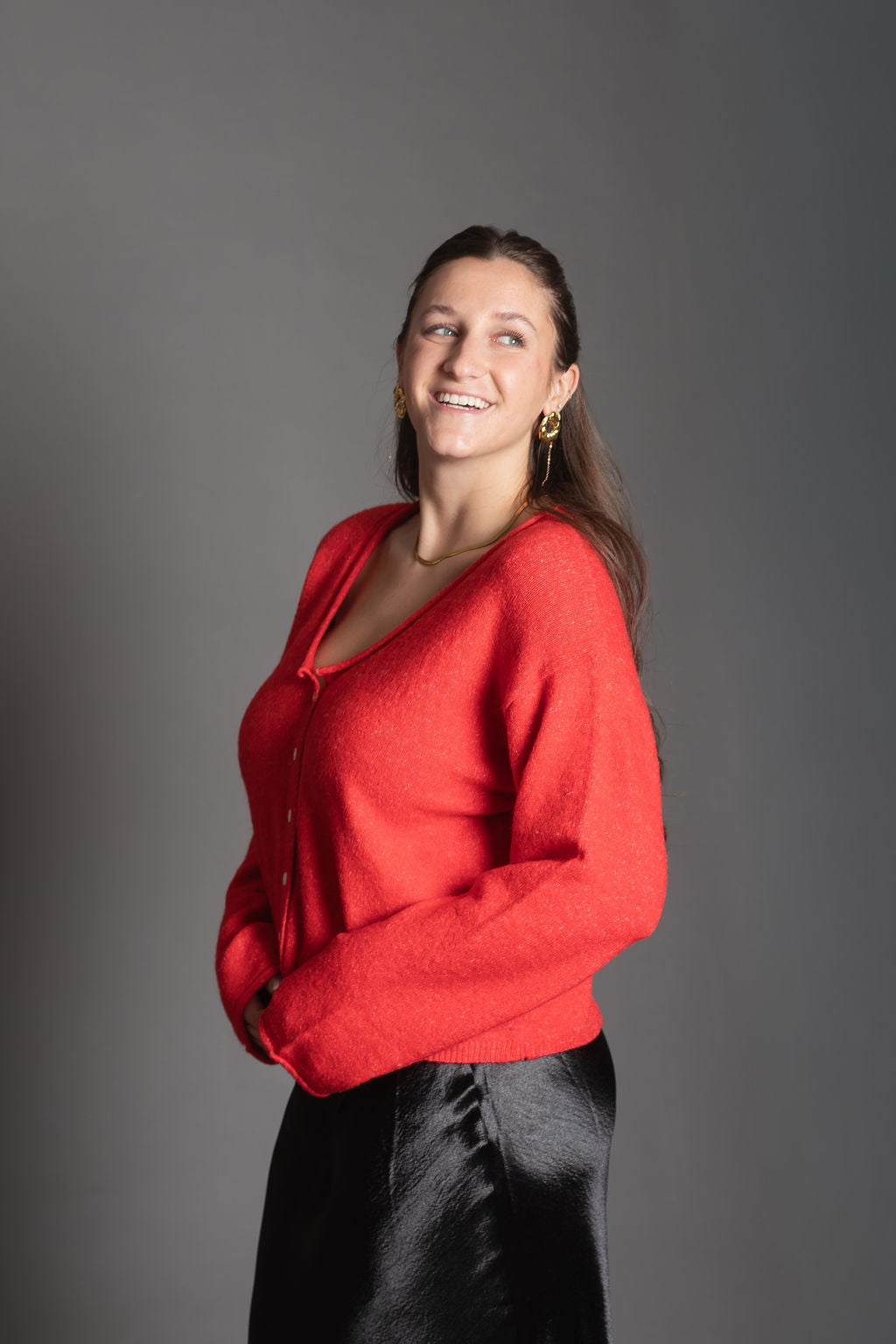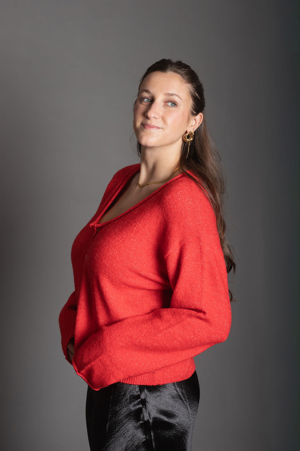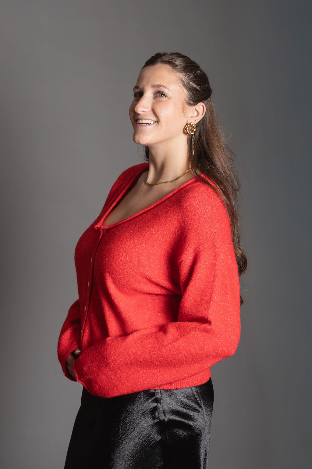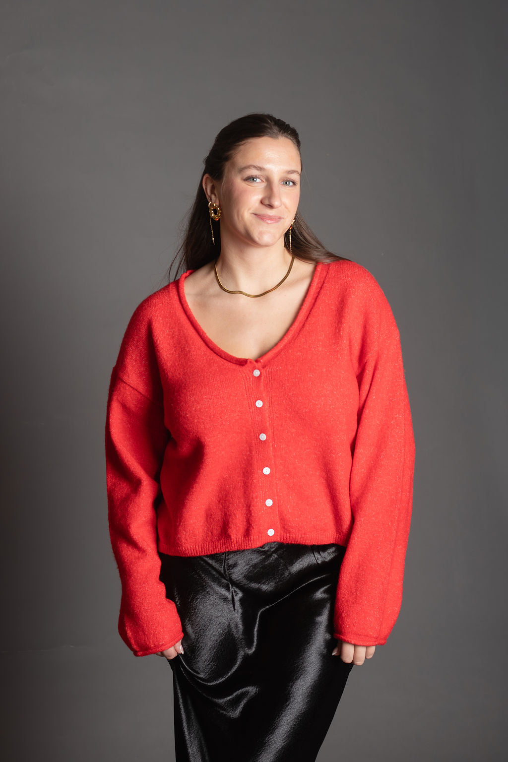 Rory Red Rolled V-Neck Cardigan Top Sweater