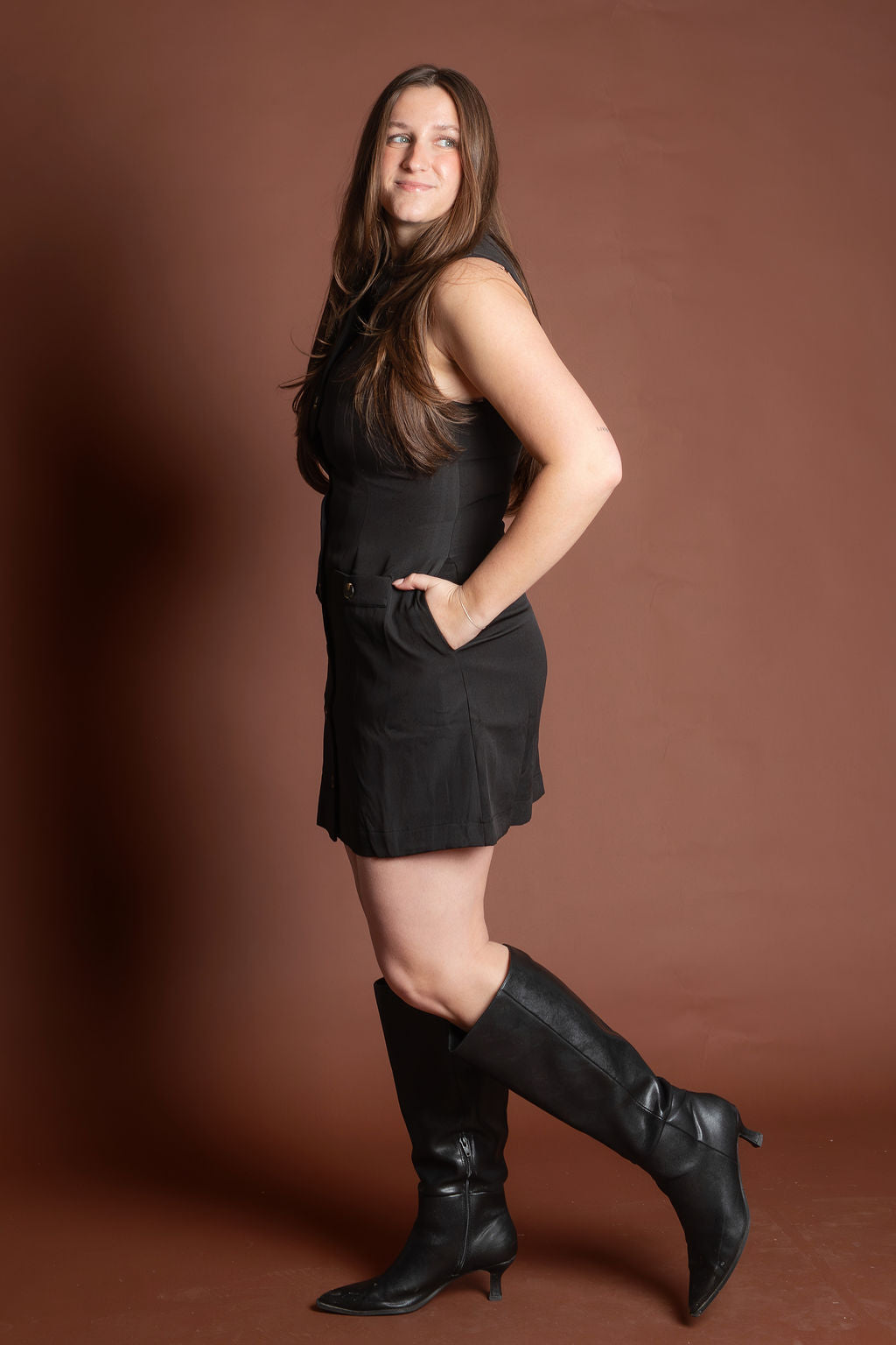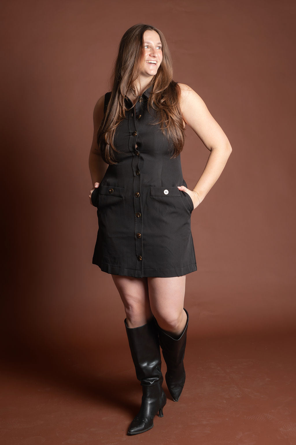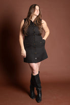 Needmore Black Button Mini Dress